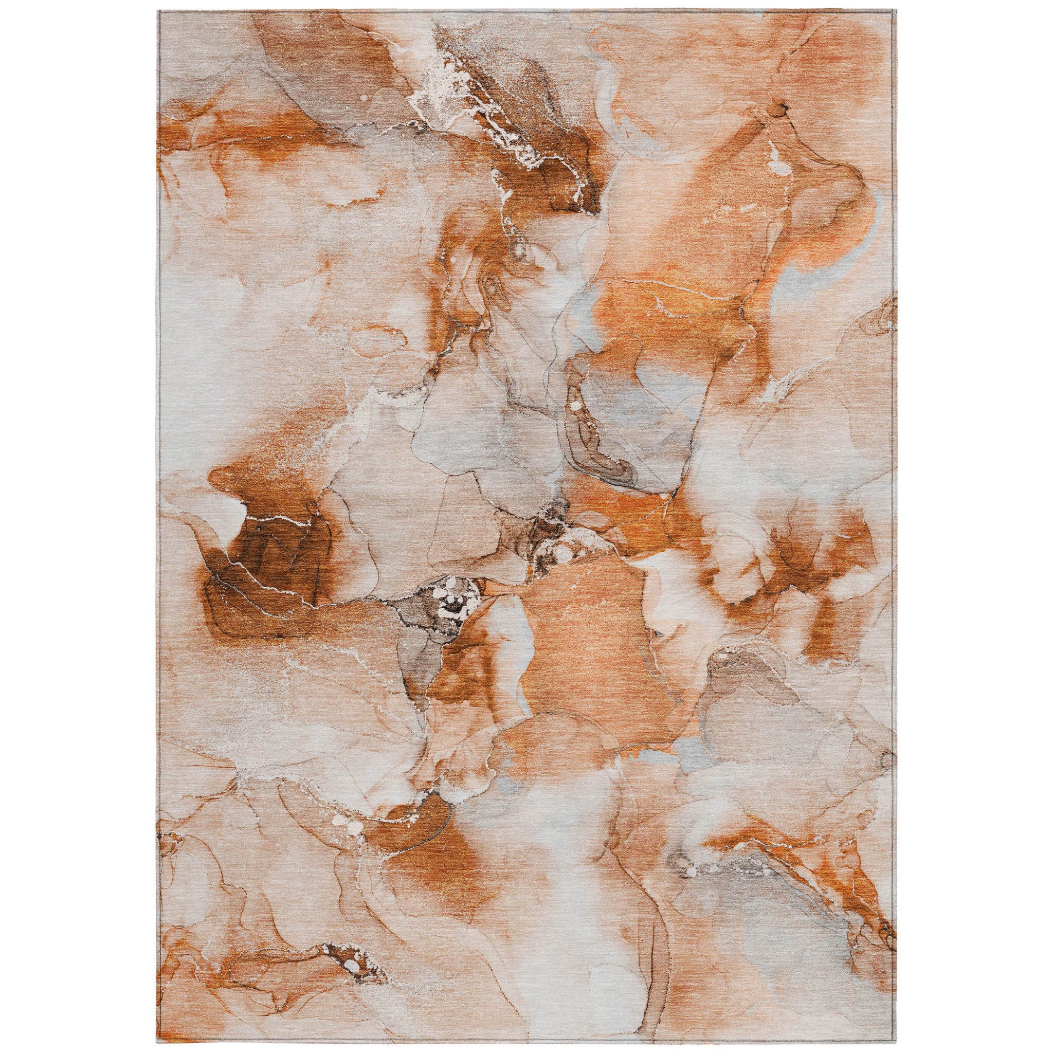 Add some artistry to your room with this 9-foot x 12-foot orange and ivory abstract washable stain resistant non skid indoor outdoor area rug. This rectangle shaped rug features a abstract design in orange and ivory to give it visual interest. A classic shape marries with good looking design for your space ideal for spaces with kids and pets, this rug is stain resistant to help repel stains and spilled liquids. Place this area rug against a hardwood or tile floor and it will enliven your living space with style and sophistication. 108-inch H x 144-inch W x 0.19-inch D