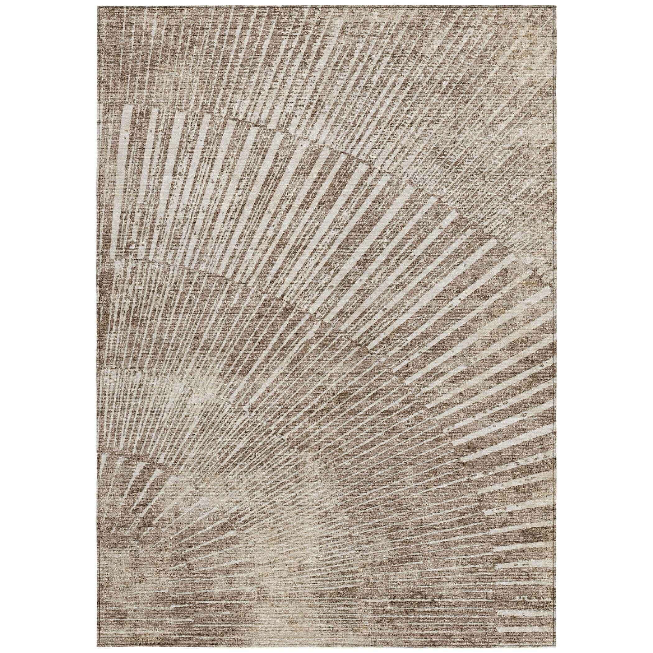 9' X 12' Taupe and Ivory Abstract Washable Non Skid Indoor Outdoor Area Rug