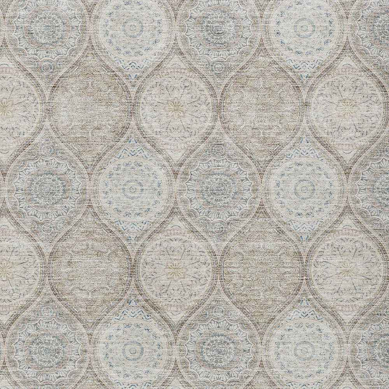 9' X 12' Taupe Beige And Khaki Floral Medallion Washable Indoor Outdoor Area Rug