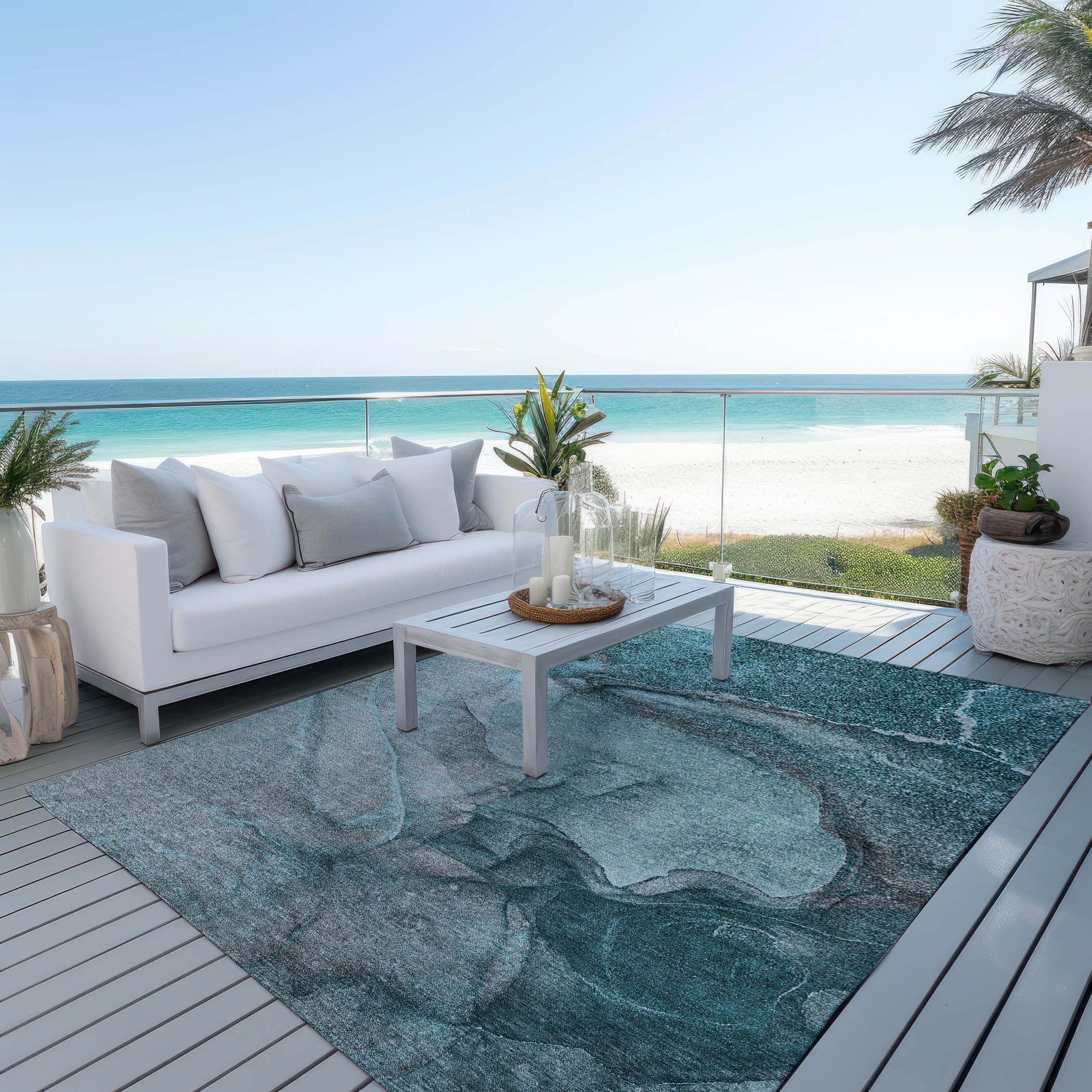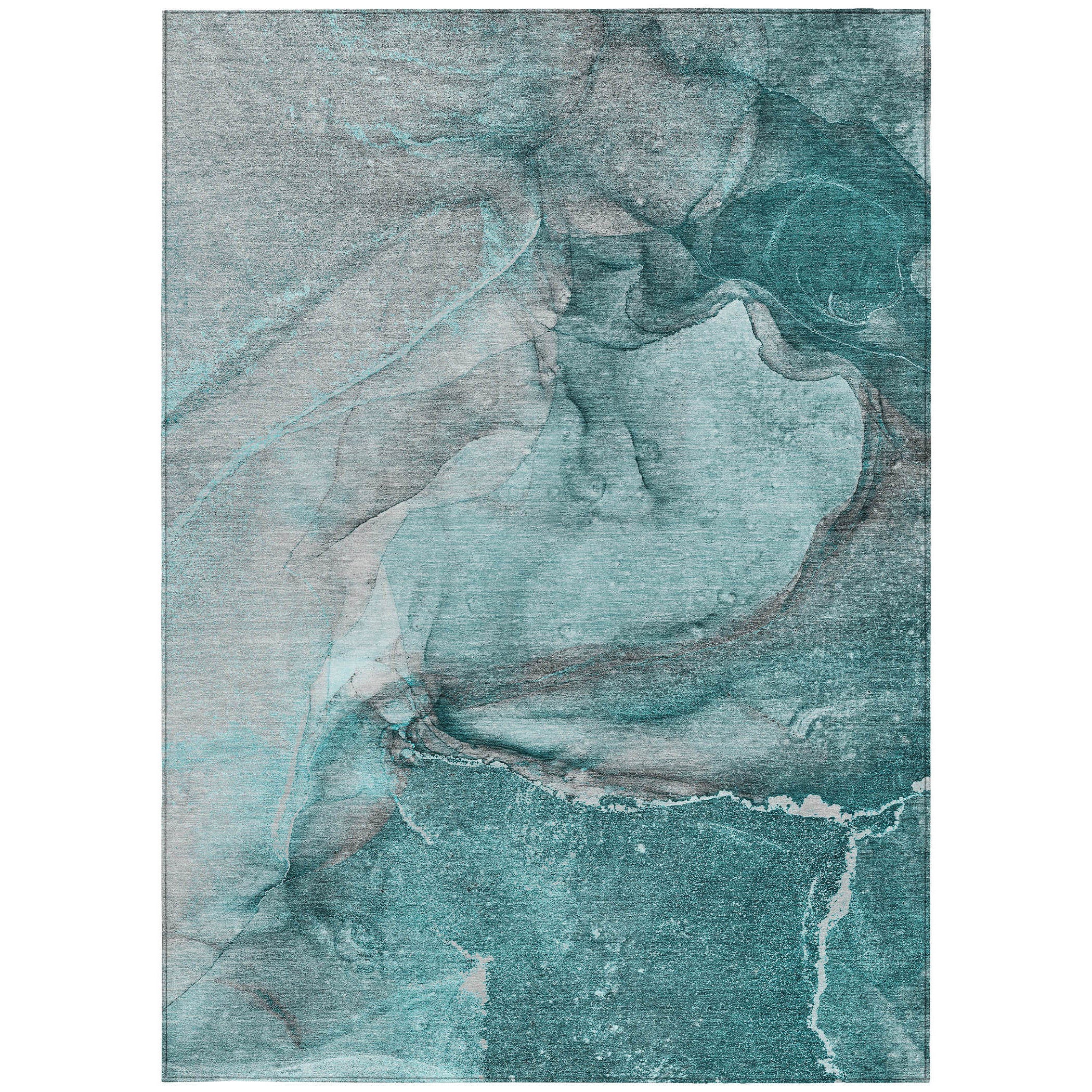 9' X 12' Teal Abstract Washable Non Skid Indoor Outdoor Area Rug
