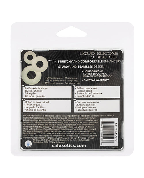 Alpha Liquid Silicone Glow in the Dark Cock Ring - Set of 3 - GreatEagleInc