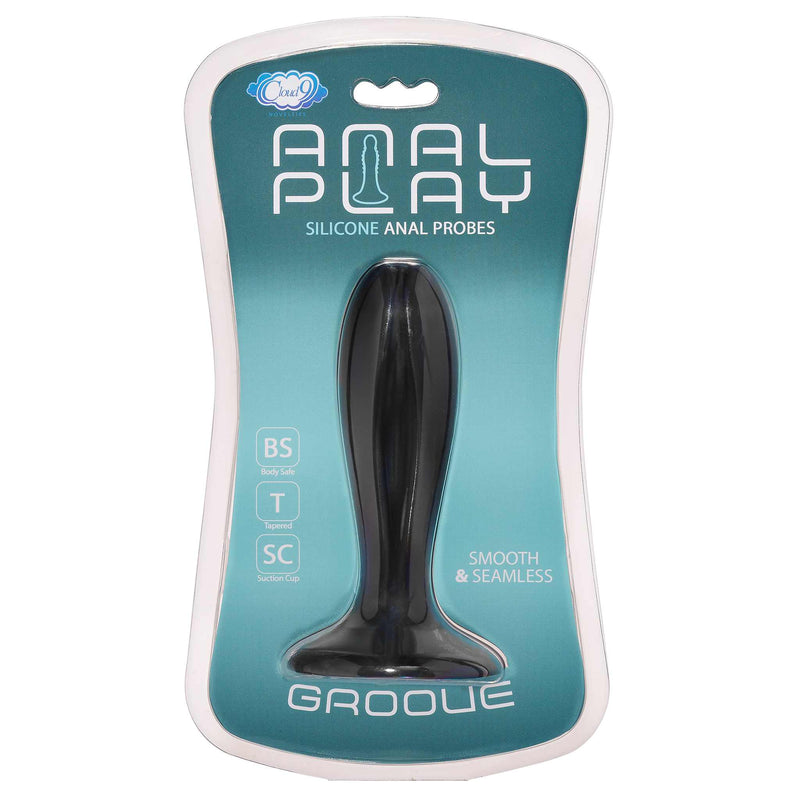 Anal Play Silicone Groove from Cloud Nine Novelties. Cloud 9 Novelties Anal Play Series is perfect for beginners who want to experiment with backdoor play for the first time or for more experienced users looking for something new. Firm enough flexibility to move with the body with water based lubricant, but with enough flexilbilty for maximum comfort and pleasure. Body safe Silicone. Tapered Butt Plug. Suction cup. Smooth and seamless. Size: 4.60 inches in total length, 3.7 inches insertion length, diameter 1.33 inches. Suction cup 2.5 inches. Weight 3.2 ounces. Clean with a toy cleaner or soap and water and allow to dry. Store in a cool, dry place. Warning: Cloud 9 Novelties intended for use strictly as adult toy novelties. They are not intended for medical use and have not been clinincally tested. No medical claims are warranted or implied by the use of these products. 30 day limited warranty. Cloud 9 Novelties, Pennsauten, NJ 08110. Manufactured for WTC.MFG, LLC. Made in China. Categories: Anal Toys, Prostate Massagers, P-Spot Stimulators, Small and Medium Butt Plugs, Probes, Sticks, Rods. 2023.