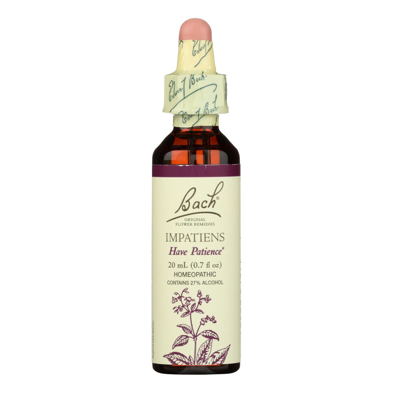 Bach impatiens have patience homeopathic remedy may support relief of naturally occurring simple nervous tension with continued use. This all-natural homeopathic formula contains a five-times dilution of impatiens hpus in an alcohol base. This 0.7 fl. Oz. Bottle has a dropper top for fast and easy use.