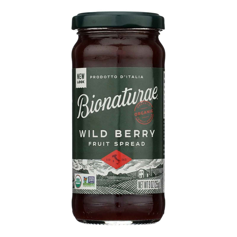 Bionaturae organic wild berry fruit spread is made with hand-harvested organic fruit from small family farms. Here’s proof that the taste of fresh organic fruit can be enjoyed year-round. Our air-tight cooking method and superior quality fruit enables us to use very low temperatures and much less sweetener, enhancing the fruit’s own goodness. Each jar of bionaturae organic wild berry fruit spread contains 9 oz. Of product.