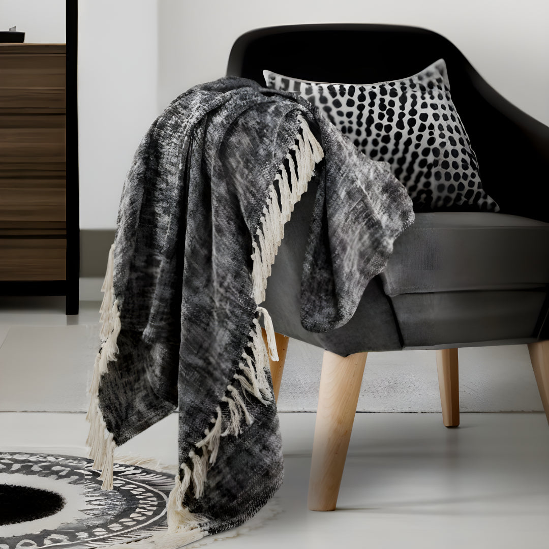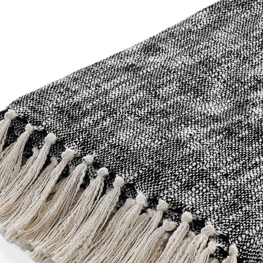 Whether you're curling up for movie night or you need an extra layer of warmth as you drift off to sleep, this black and white woven cotton solid color throw blanket is the perfect solution. Features a woven solid color design that offers sumptuous softness and texture that you'll cherish for years to come. Made from cotton this blanket will make a great addition to any room it's added to. Layering your furnishings with a decorative throw has the ability to awaken a tired living room or elevate the design of your bedroom simply by providing elements of color and texture that weren't there before. This cozy throw blanket makes the perfect add-on to movie nights and lazy afternoons. 0.2" H x 50" W x 60" D
