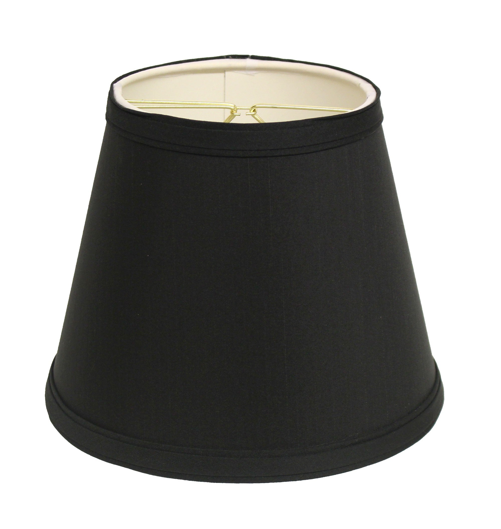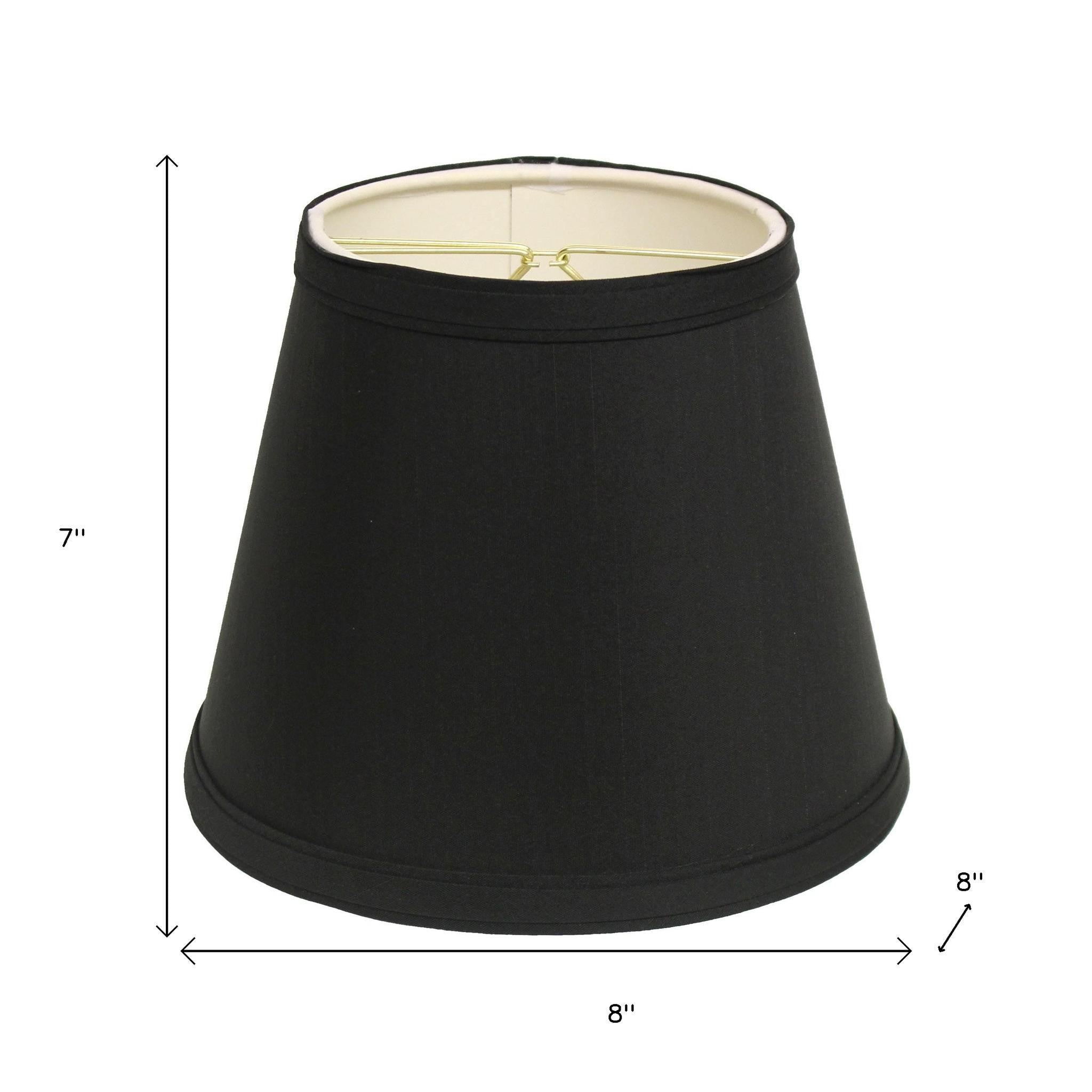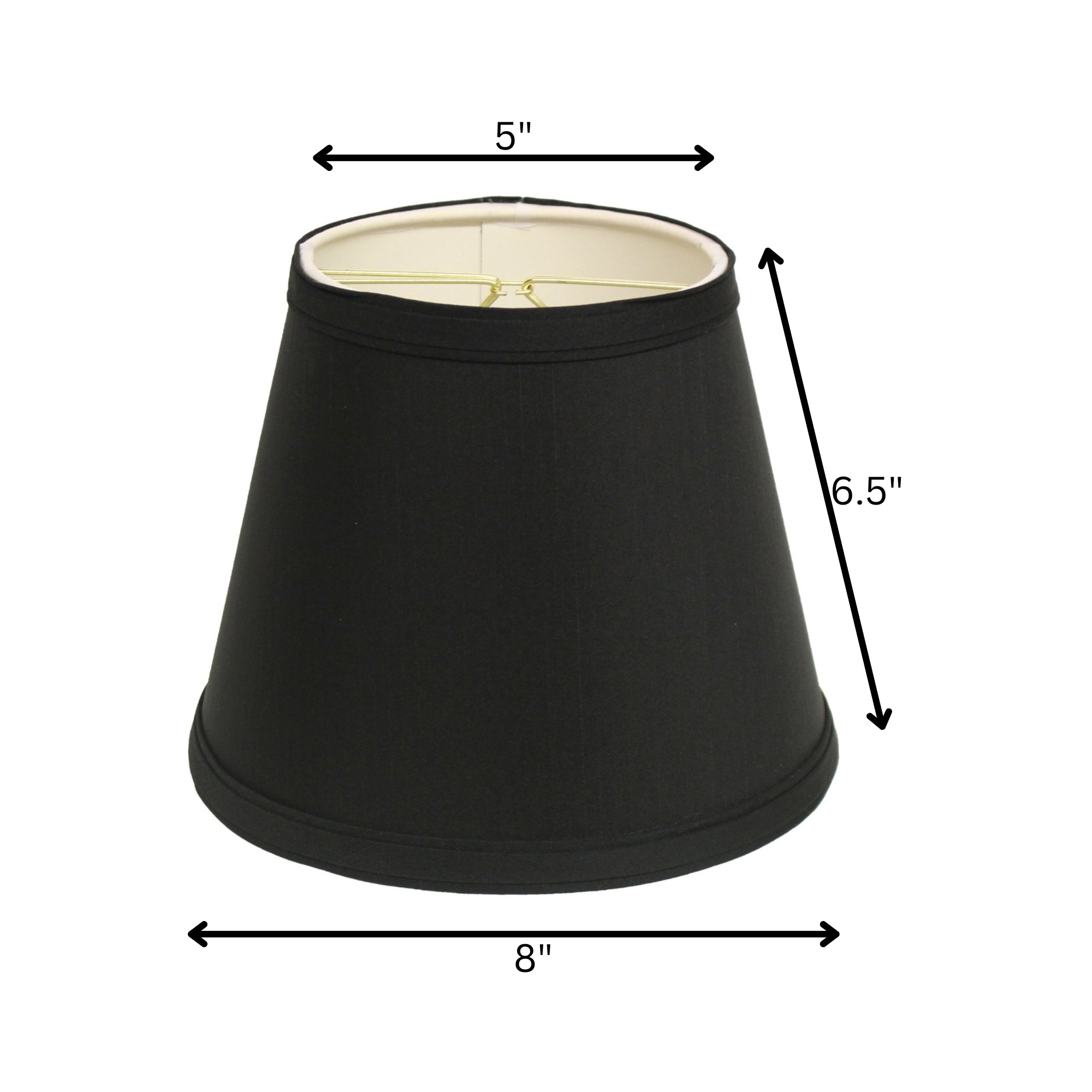 The black shantung silk empire lamp shade adds a touch of elegance to any room. Crafted from luxurious shantung silk, this traditional lampshade features a sleek black finish that enhances the warmth of your space. With a sturdy clip-on attachment, it easily fits onto various lamp bases, making installation a breeze. The empire shape, measuring 5 inches wide and deep at the top, complements a variety of decor styles. Standing at a slant height of 6.5 inches, it provides a perfect silhouette while casting a soft, inviting glow. Elevate your lighting with this exquisite piece that combines functionality and beauty seamlessly. Perfect for enhancing your home’s aesthetic, it is an ideal choice for stylish illumination. 7.00-inch h x 8.00-inch w x 8.00-inch d.
