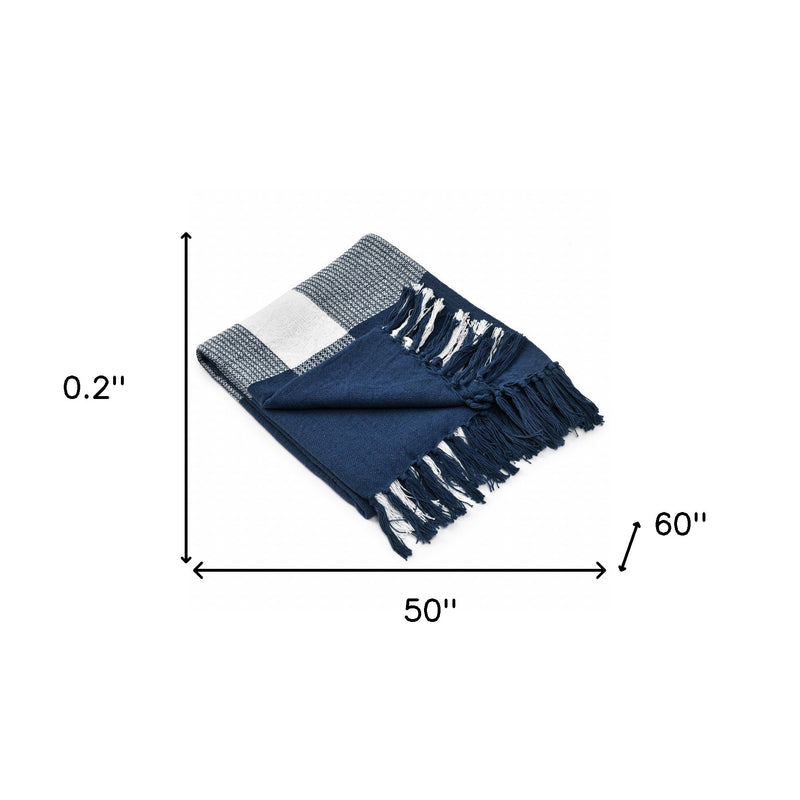 Blue and White Woven Cotton Checkered Throw Blanket Skip to content