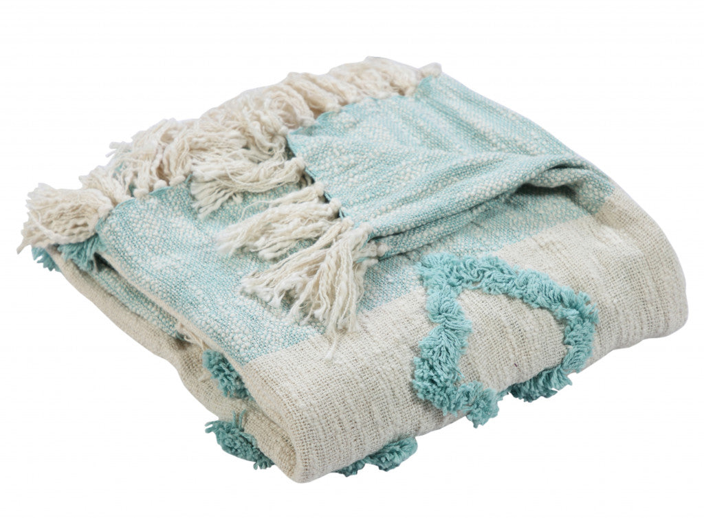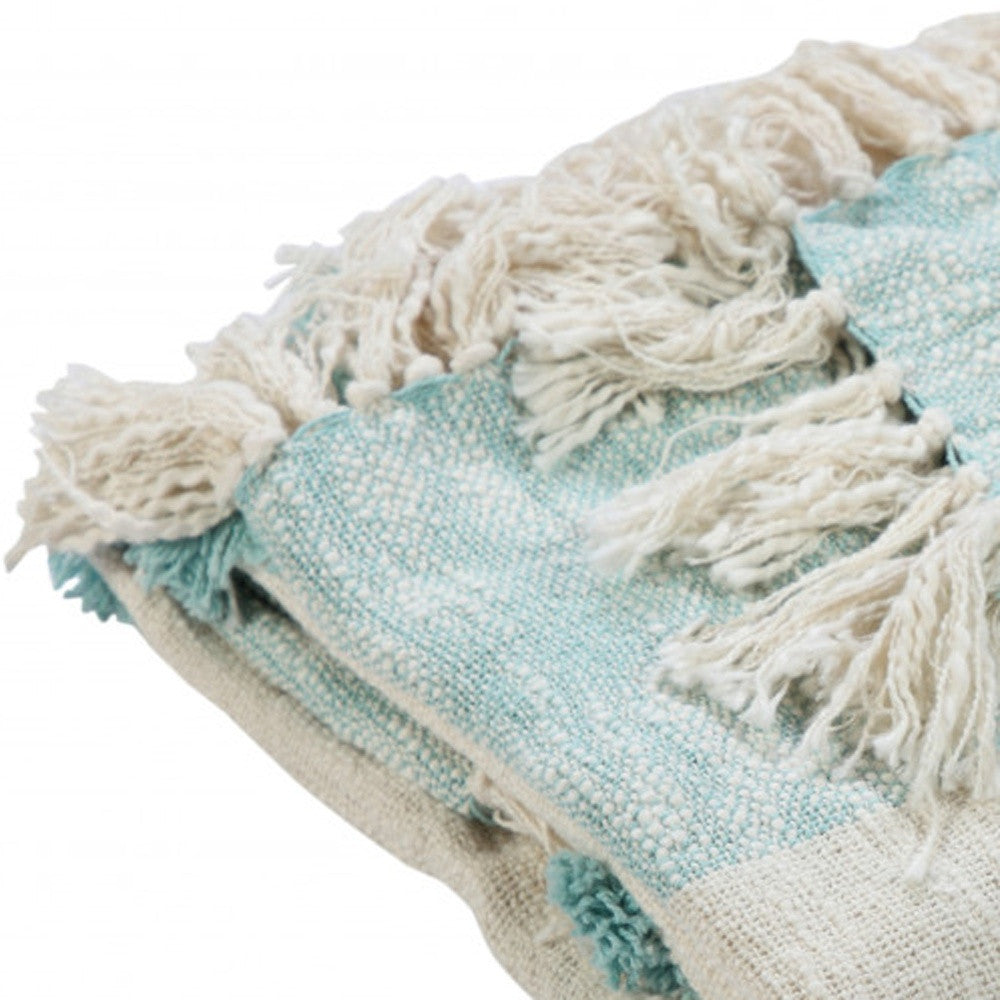 Blue and White Woven Cotton Checkered Throw Blanket