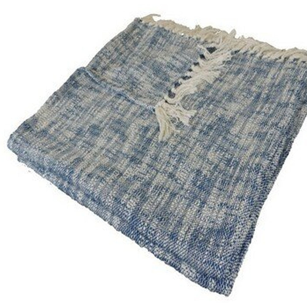 Blue and White Woven Cotton Solid Color Throw Blanket