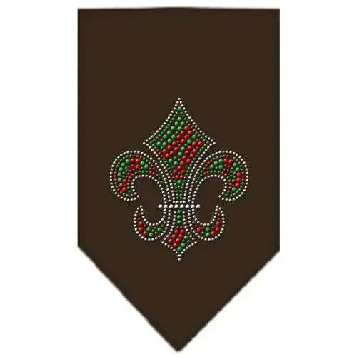 Christmas Fleur De Lis Rhinestone Bandana Cocoa Small