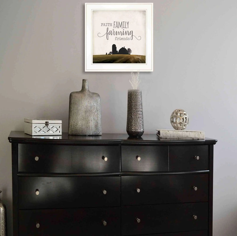 Unique and decorative, this faith family farming friends 1 white framed print wall art will leave a lasting impression. This print is a visual artistic expression that allows you to decorate your space in style. Reproduced for you on paper, this hanging decorative accent will be a trendy and fashionable way to dress your walls. Hang on your wall to add some up to date fashion and decoration. Instantly liven up your space with this art that brings color and dimension to your walls. 15 inches H x 15 inches W x 1 inches D