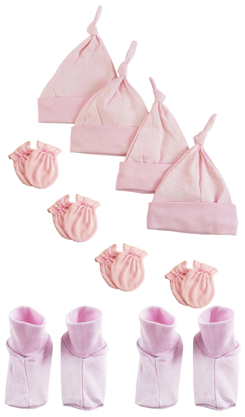 Pink Knotted Baby Cap (100% Cotton), Pink Knotted Baby Cap (100% Cotton), Pink Knotted Baby Cap (100% Cotton), Pink Knotted Baby Cap (100% Cotton), Pink Infant Mittens (Jersey), Pink Infant Mittens (Jersey), Pink Infant Mittens (Jersey), Pink Infant Mittens (Jersey), Pink Booties (100% Cotton), Pink Booties (100% Cotton)