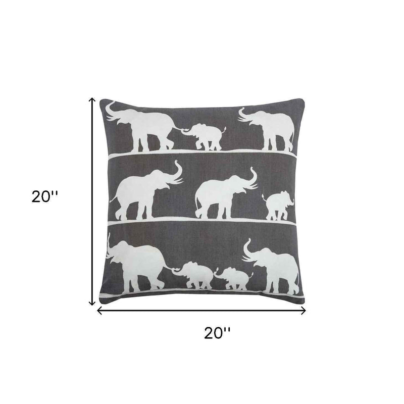 Gray and White Elephant Parade Down Filled Throw Pillow