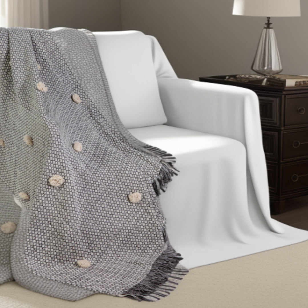 This gray woven cotton houndstooth throw blanket brings a classic, refined style to your space. Features a woven houndstooth design that offers sumptuous softness and texture that you'll cherish for years to come. Made from cotton this blanket will make a great addition to any room it's added to. Add extra texture to your decor and turn your room into an inviting space. Perfect for your favorite chair, bed or lounging on the couch, this blanket helps bring a warm and fashionable flair to your space. 0.2" H x 50" W x 60" D