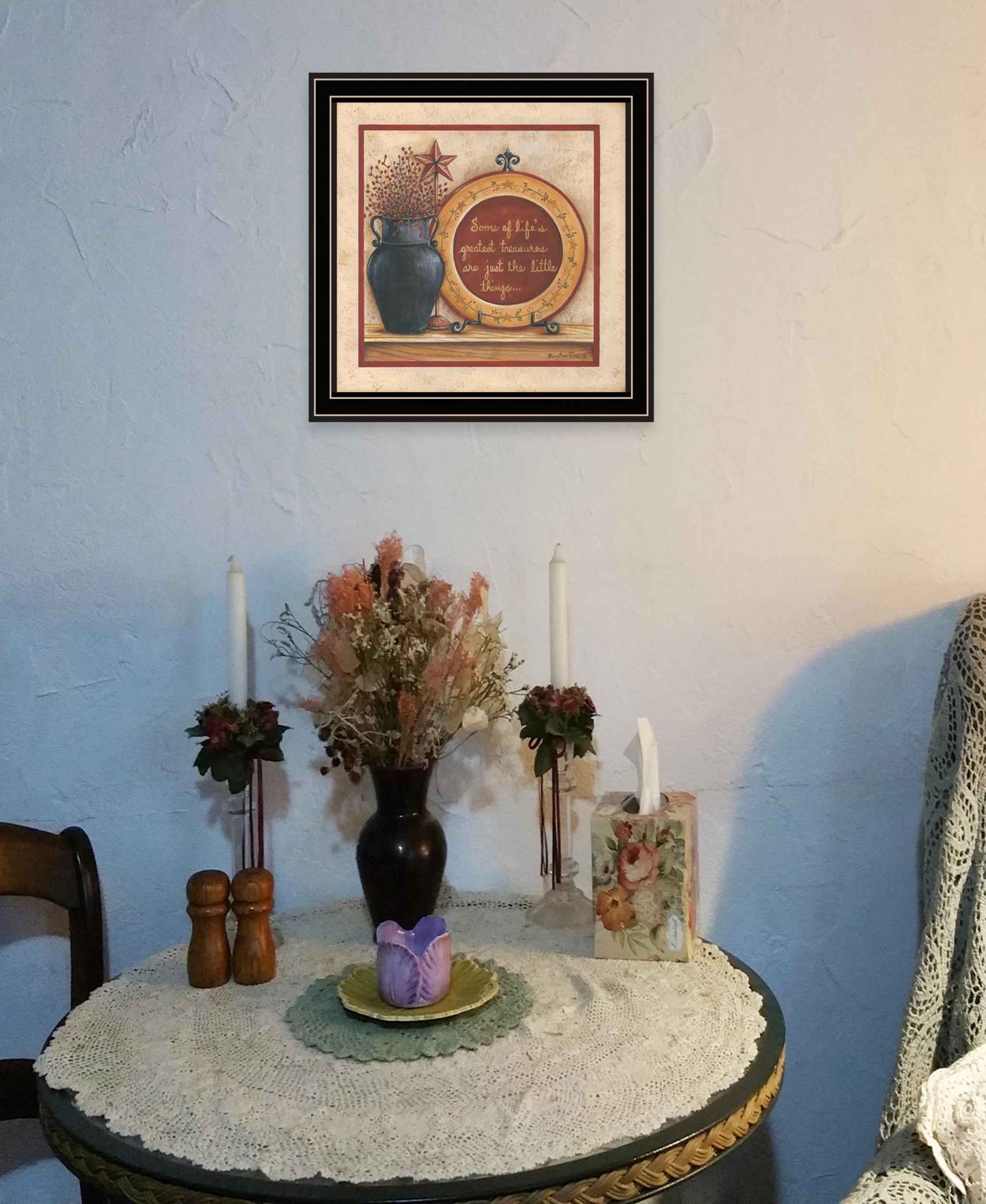 Unique and decorative, this greatest treasures 2 black framed print wall art will leave a lasting impression. This print is a visual artistic expression that allows you to decorate your space in style. Reproduced for you on wood, this hanging decorative accent will be a trendy and fashionable way to dress your walls in a rustic and modern farmhouse vibe. Hang on your wall to add some up to date fashion and decoration. Utilize this opportunity to create a focal point in the room with this fabulous wall decor option. 14 inches H x 14 inches W x 1 inches D