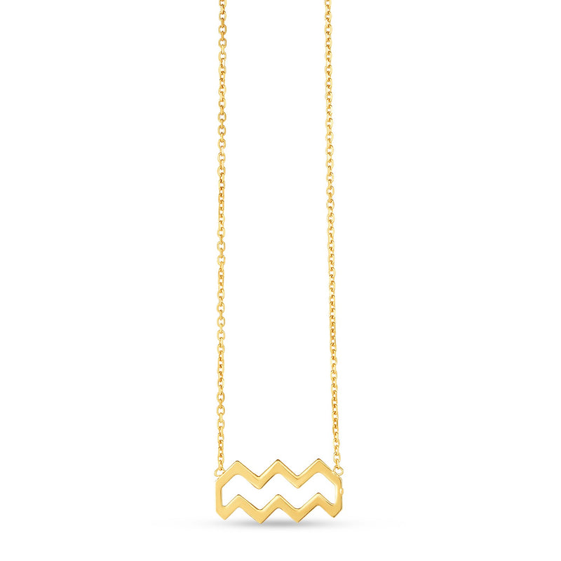 This Aquarius necklace is beautifully crafted in 14k yellow gold with a high polish finish & secures with a spring ring clasp. This beautiful piece is hand crafted & a perfect piece for that special aquarius in your life. Measuring 18 inches in length. Don't forget the matching earrings!