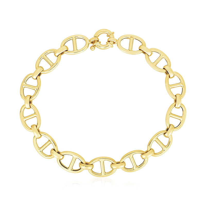 This Mariner Link bracelet beautifully crafted in 14k yellow gold with a high polish finish & closes with a spring clasp. Measuring 8.8 mm width & available in a 7 1/2 inches length.