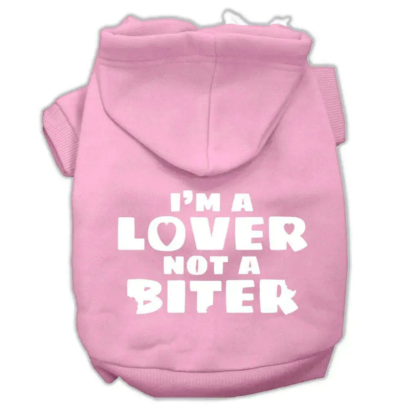 I'm A Lover Not A Biter Screen Printed Dog Pet Hoodies Light Pink Size Sm