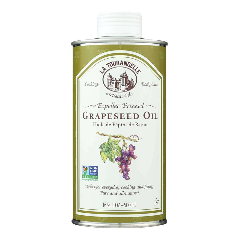 La tourangelle's expeller-pressed grapeseed oil is a the natural by-product of the wine grape extracted without the use of any chemicals. Our expeller-pressed grapeseed oil can be heated to 450 degrees for healthy cooking and frying and it's low in saturated fat content. There is a light flavor and our grapeseed oil is star-k kosher certified, non-gmo project verified and it is perfect for everyday use. Expeller-pressed grapeseed oil has a high level of polyunsaturated fat and contains an average of 9.8 g. Of omega-6 per serving. We use only 100% all natural, grapeseed's in our oil that comes in a 16.9 fl. Oz. Canister. See nutrition facts panel for allergens.