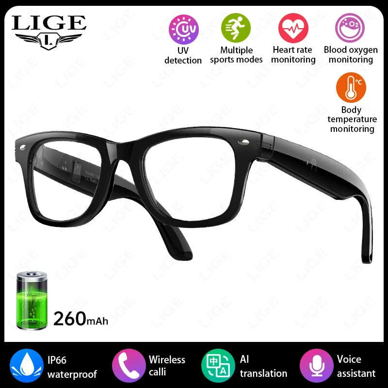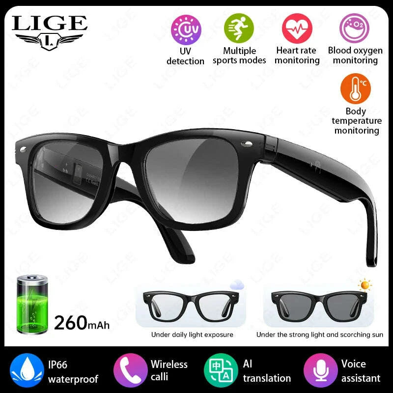 LIGE AI Smart Glasses Men 2025 New Color-Changing Translation Glasses Temperature Monitoring Waterproof Call Smart Sunglasses