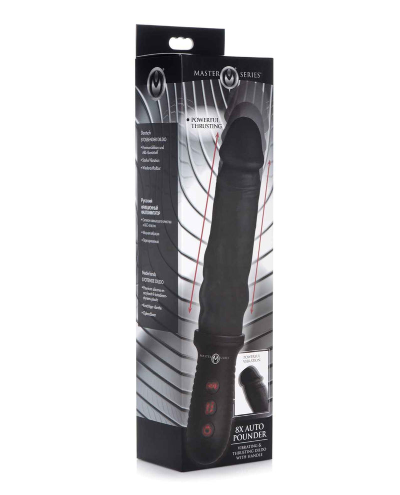 Master Series 8X Auto Pounder Vibrating & Thrusting Dildo w/Handle - Black