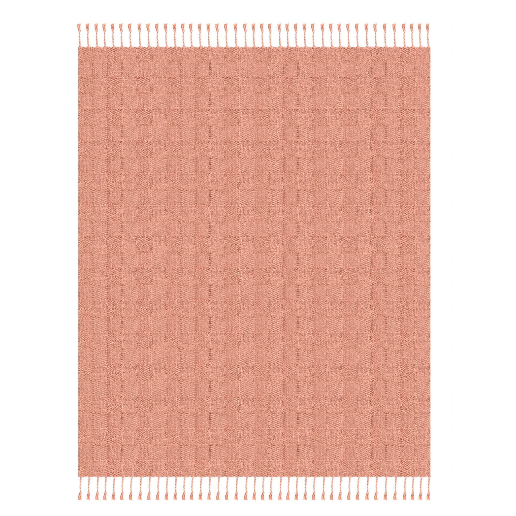 This pink woven cotton solid color throw blanket is the best (and most stylish) way to wrap you and your loved ones in the epitome of cozy all year long. Features a woven solid color design that offers sumptuous softness and texture that you'll cherish for years to come. Made from cotton this blanket will make a great addition to any room it's added to. Layering your furnishings with a decorative throw has the ability to awaken a tired living room or elevate the design of your bedroom simply by providing elements of color and texture that weren't there before. Perfect for your favorite chair, bed or lounging on the couch, this blanket helps bring a warm and fashionable flair to your space. 0.2" H x 50" W x 60" D
