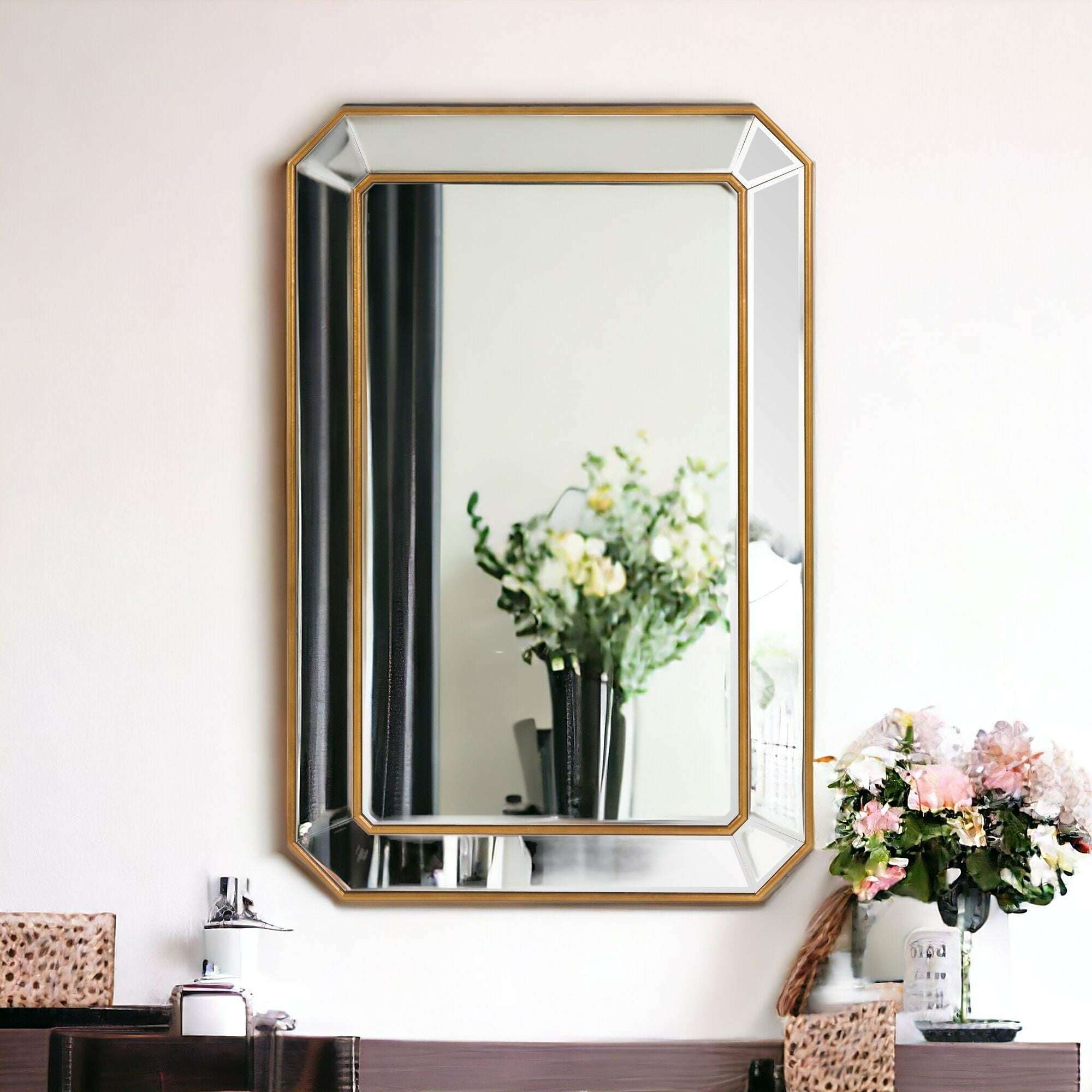 Recatngle Gold Leaf Mirror With Angled Corners Frame