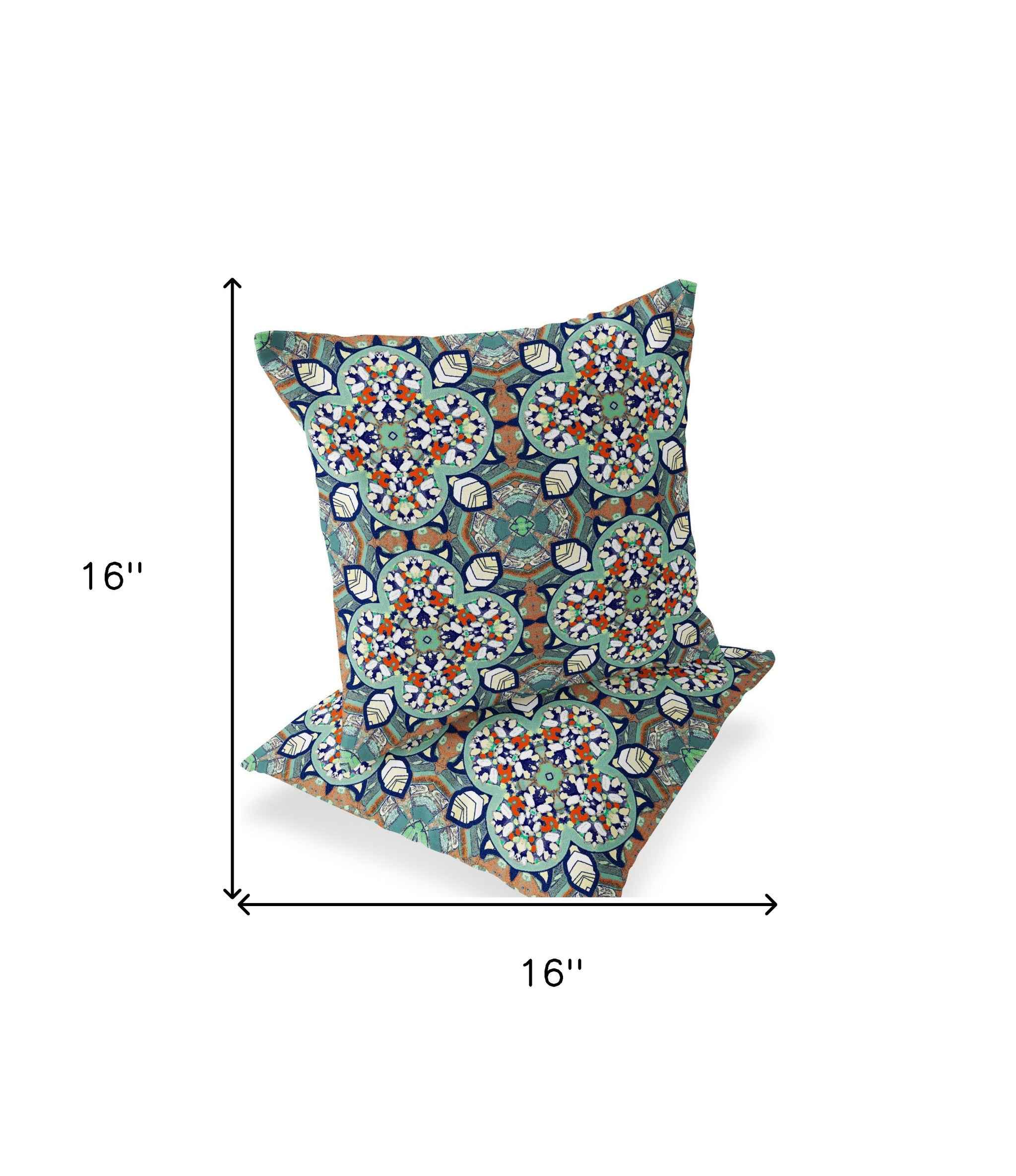 Set of Two 16" X 16" Green and White Blown Seam Floral Indoor Outdoor Throw Pillow