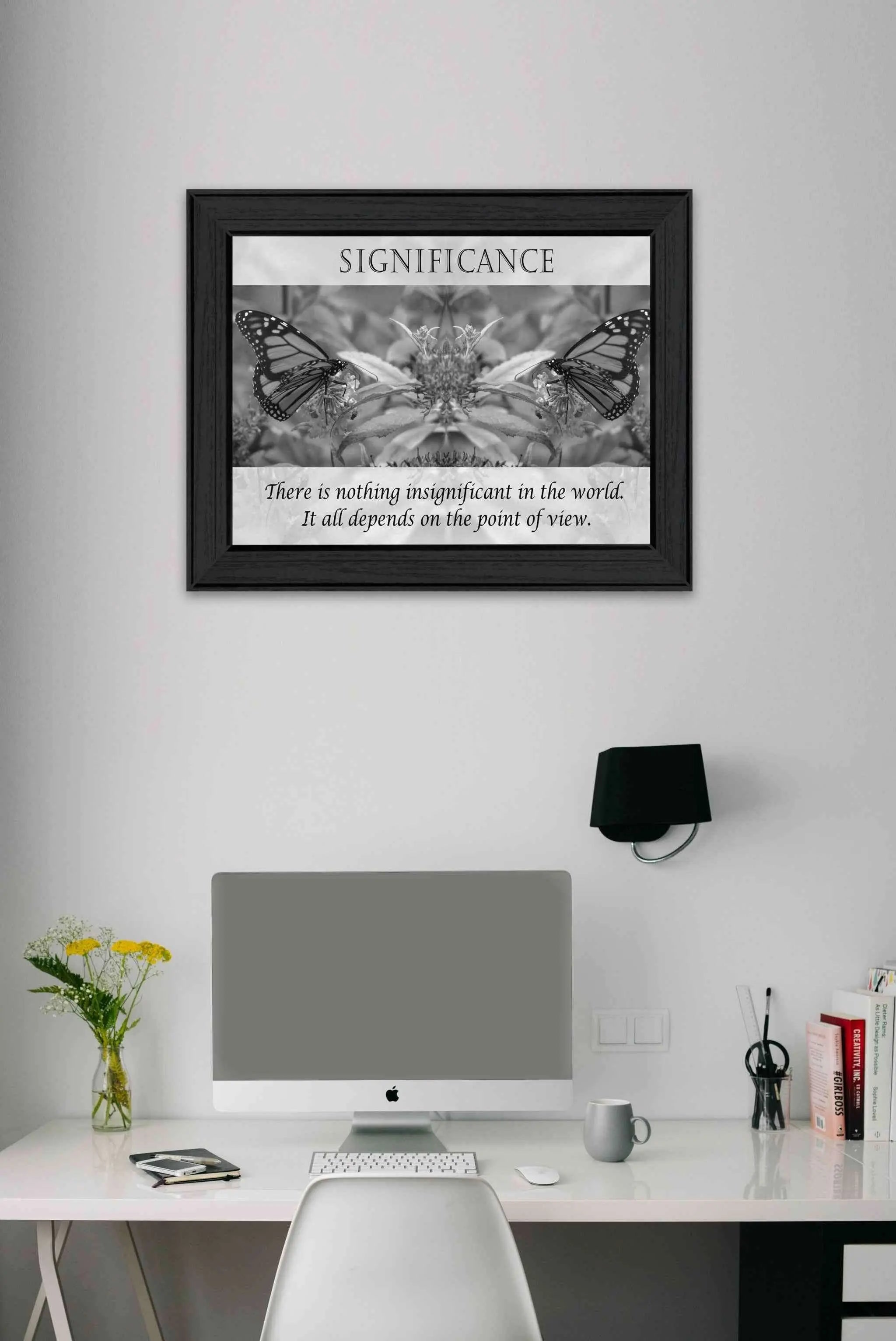Unique and decorative, this significance 5 black framed print wall art will leave a lasting impression. Inspired by one of nature's most revered icons, this pretty butterfly inspired artwork will be a beautiful and special addition to your room's decor. This print is a visual artistic expression that allows you to decorate your space in style. Reproduced for you on paper, this hanging decorative accent will be a trendy and fashionable way to dress your walls. Adding this hanging wall art to your space to make your room feel more finished and attractive. Instantly liven up your space with this art that brings color and dimension to your walls. 18 inches H x 14 inches W x 1.5 inches D