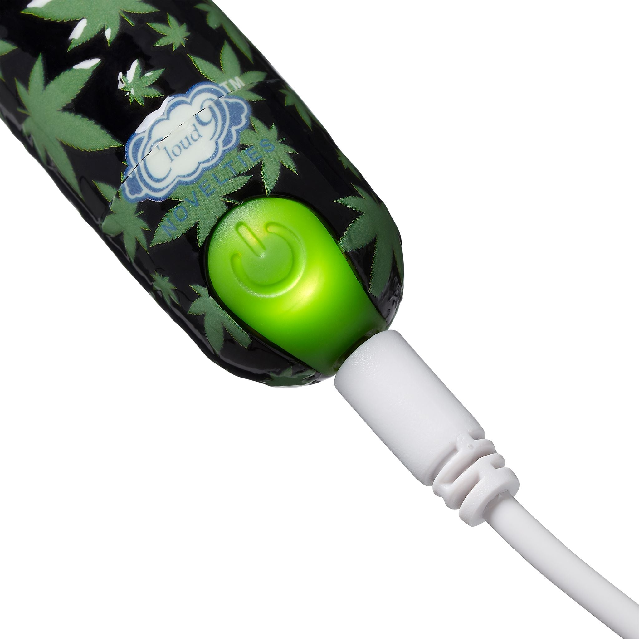 Personal Vibrator Stubby Vibe Black Cannabis Leaf from Cloud 9 Novelties. Celebrate the cannabis culture with a discreet and petite rechargeable bullet vibrator. This uniquely patterned Cloud 9 Novelty Vibrator features 10 speeds of vibration patterns and an ergonomic shape the Personal Vibe features a powerful motor. Perfect when on the go. This Vibe is silky smooth with a velvety feel for comfort. The strong motor delivers intense vibrations that will take you to new heights.