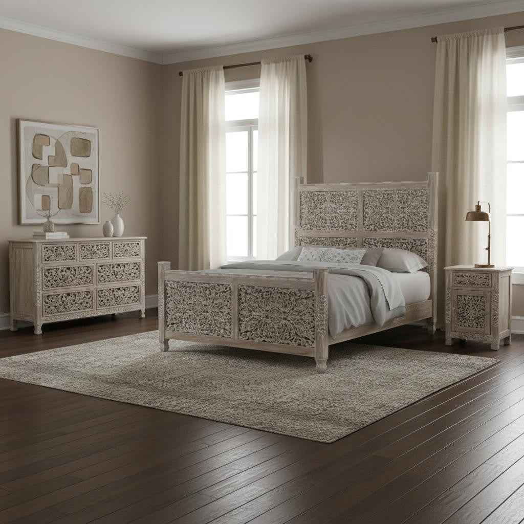 Three Piece Gray Solid Wood Bedroom Set Skip to content