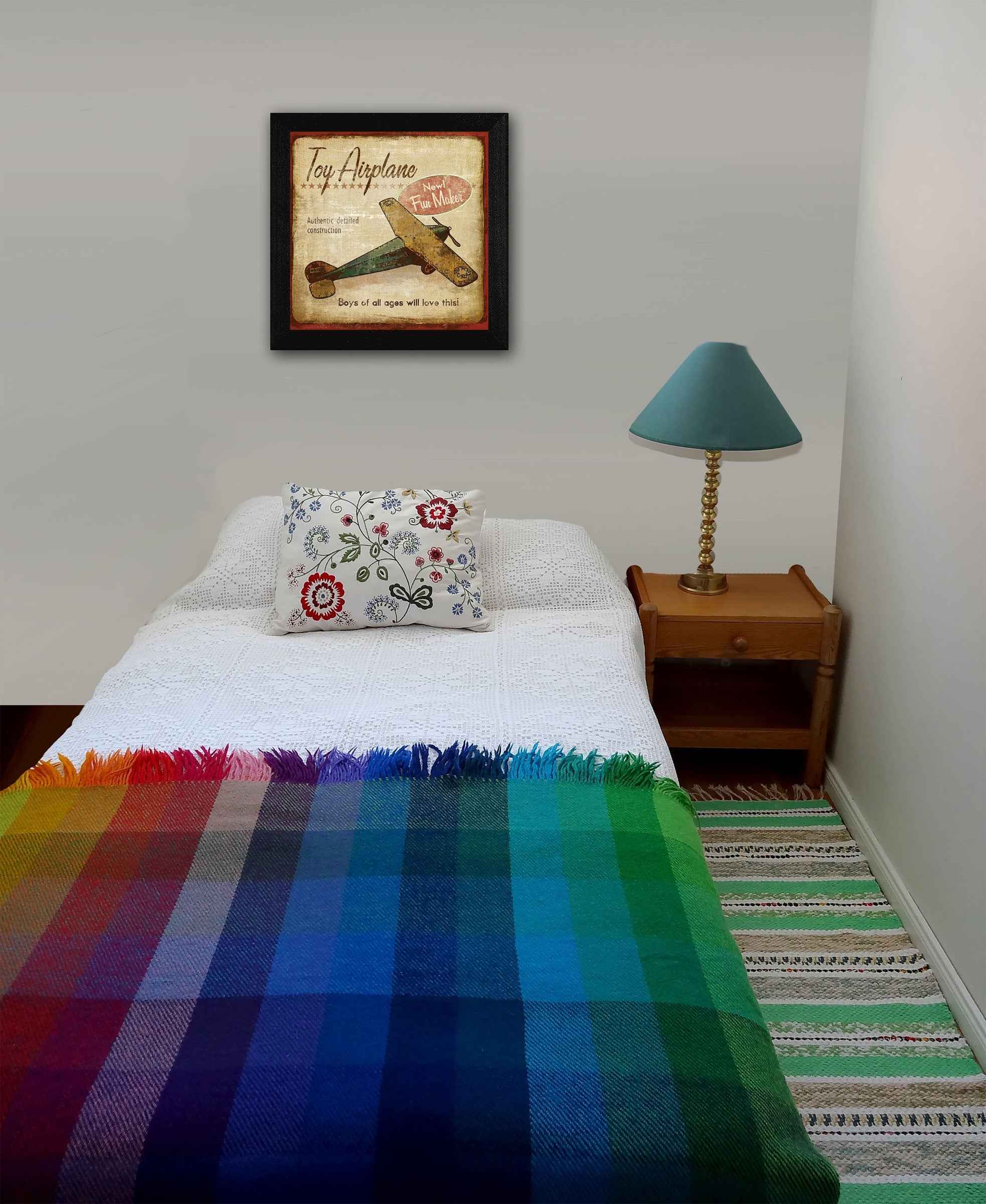 The toy airplane black framed print wall art is the perfect decorative accessory for your home. This transportation inspired wall art features a toy airplane icon and will bring a refreshing look and perspective to your walls. This print is a visual artistic expression that allows you to decorate your space in style. Reproduced for you on paper, this hanging decorative accent will be a trendy and fashionable way to dress your walls. Hang on your wall to add some up to date fashion and decoration. Utilize this opportunity to create a focal point in the room with this fabulous wall decor option. 14 inches H x 14 inches W x 1 inches D