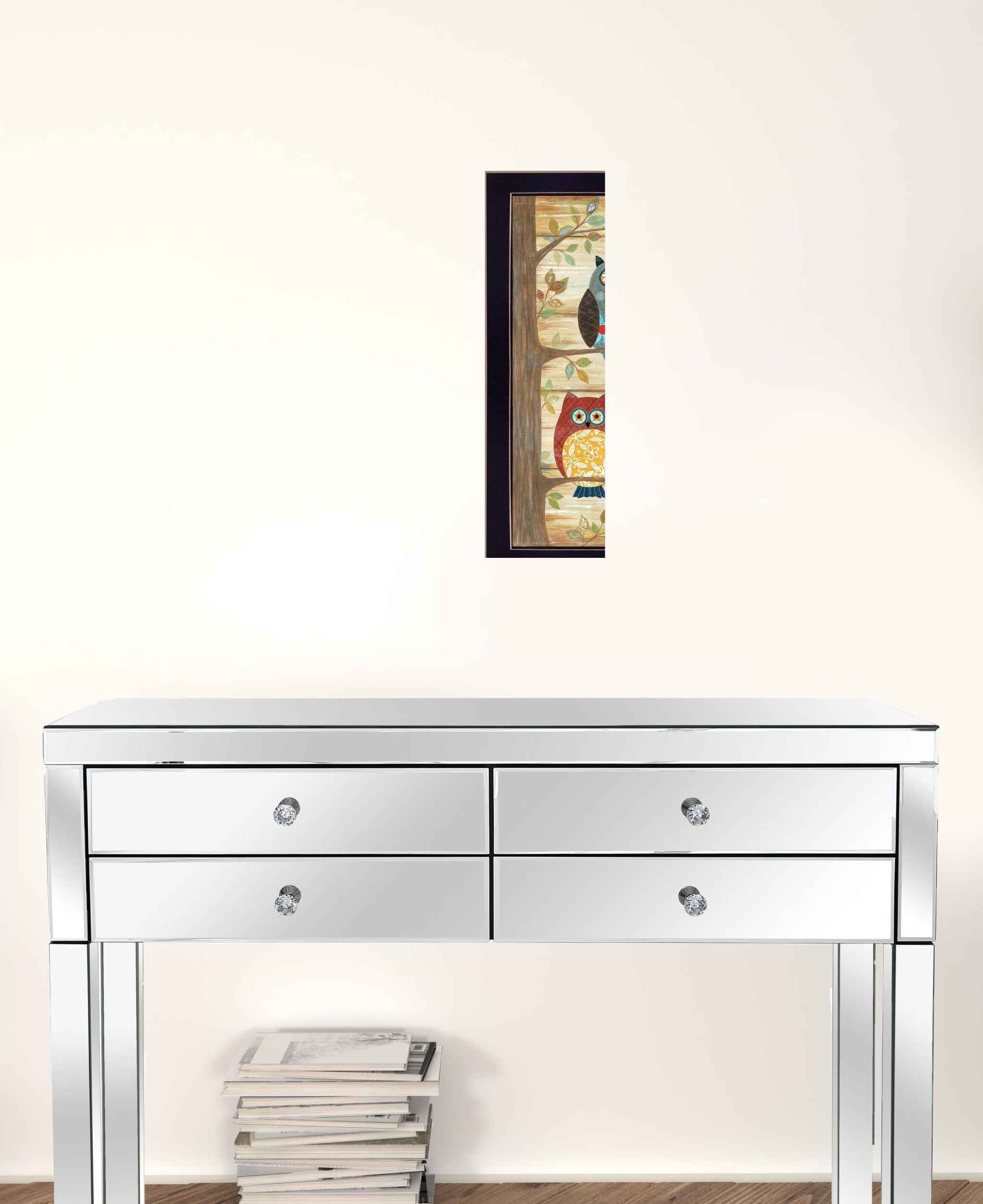 The two wise owls black framed print wall art is the perfect decorative accessory for your home. Update your walls with this woodland animal decor. This print is a visual artistic expression that allows you to decorate your space in style. Reproduced for you on paper, this hanging decorative accent will be a trendy and fashionable way to dress your walls. Adding this hanging wall art to your space to make your room feel more finished and attractive. Utilize this opportunity to create a focal point in the room with this fabulous wall decor option. 11 inches H x 20 inches W x 1 inches D