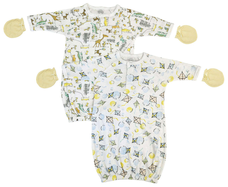 Unisex Print Gown (100% Cotton), Unisex Print Gown (100% Cotton), Yellow Infant Mittens (Jersey), Yellow Infant Mittens (Jersey)