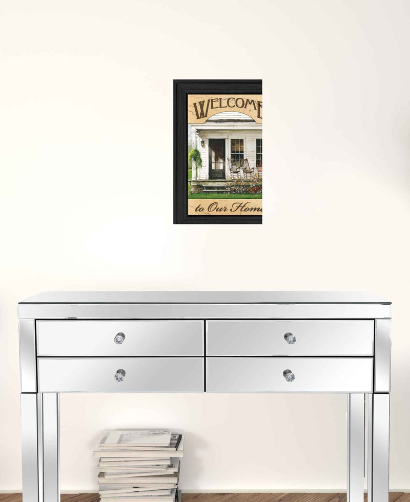 The welcome to our home 1 black framed print wall art is the perfect decorative accessory for your home. This print is a visual artistic expression that allows you to decorate your space in style. Reproduced for you on paper, this hanging decorative accent will be a trendy and fashionable way to dress your walls. Hang on your wall to add some up to date fashion and decoration. Utilize this opportunity to create a focal point in the room with this fabulous wall decor option. 14 inches H x 18 inches W x 1 inches D