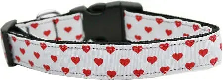 White And Red Dotty Hearts Nylon Dog Collar Xs