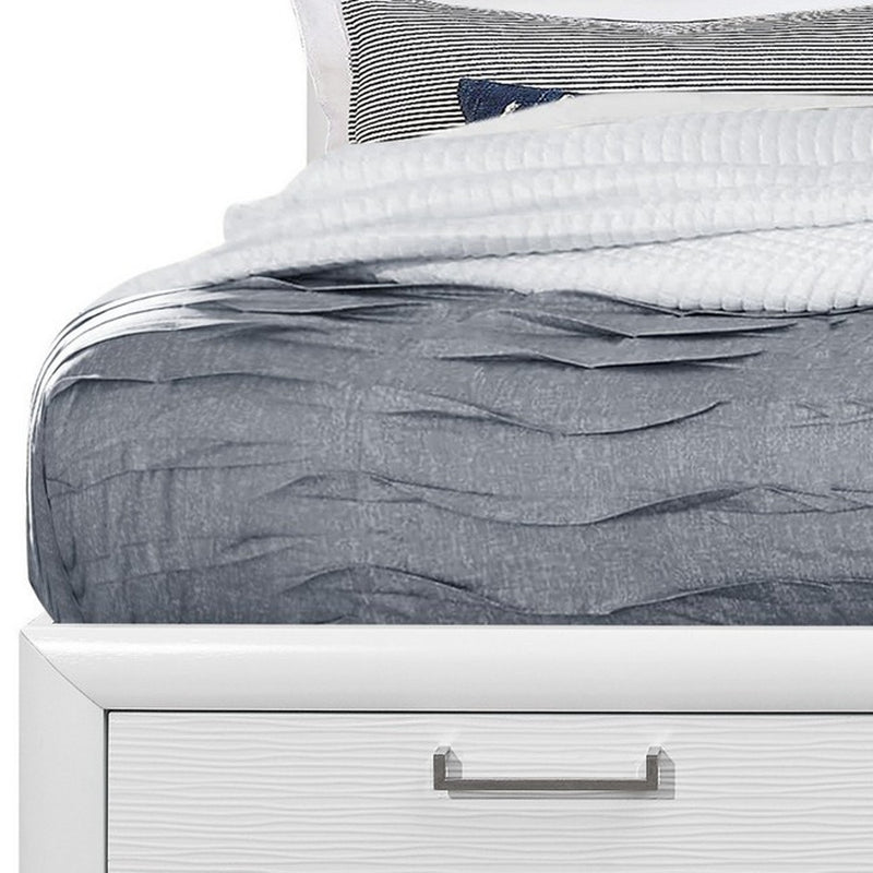 White Solid Wood Lighted Full Bed Frame With Drawers