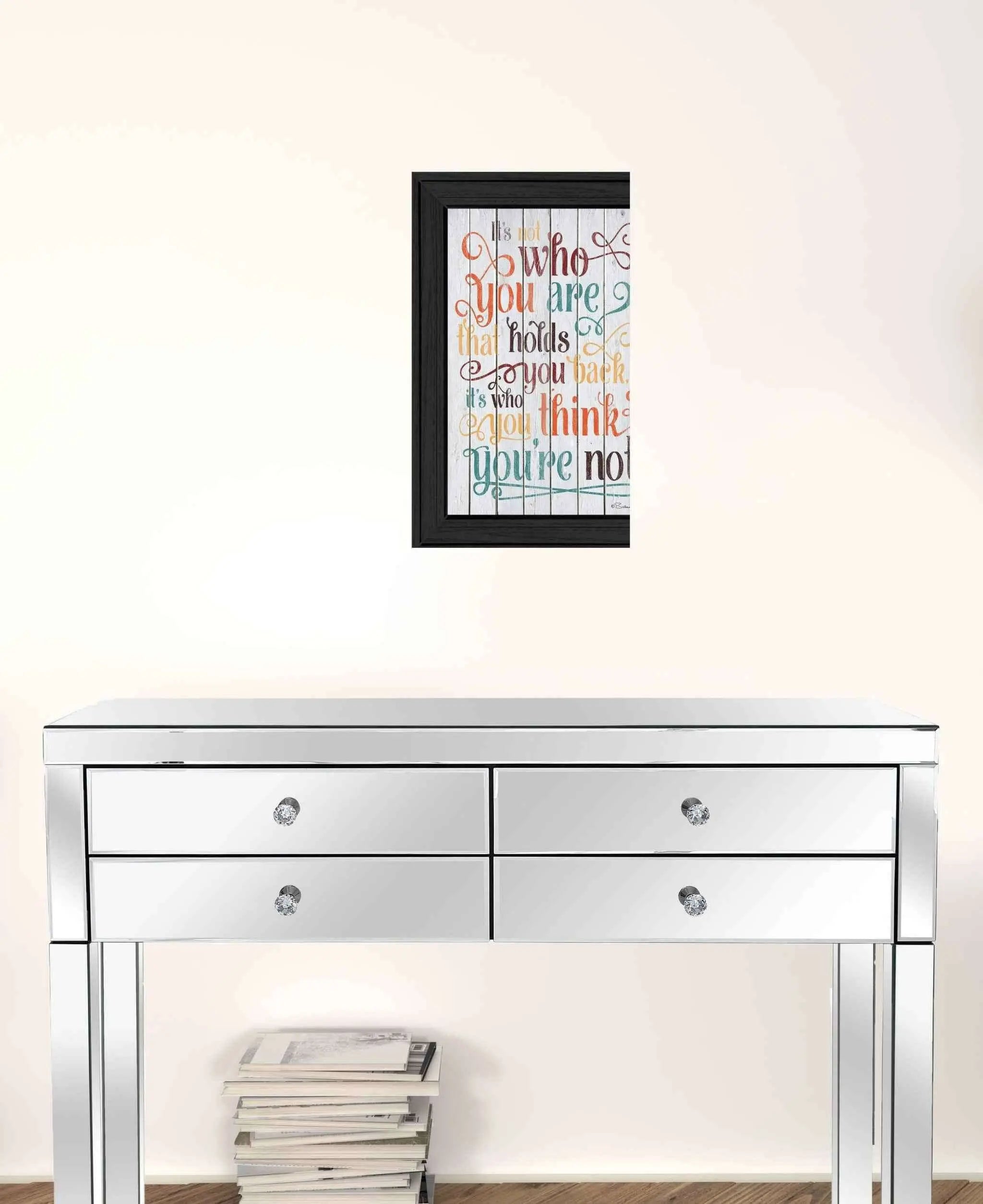 Add an air of fashion to your room and rejuvenate the space with this who you think you are 1 black framed print wall art. This print is a visual artistic expression that allows you to decorate your space in style. Reproduced for you on paper, this hanging decorative accent will be a trendy and fashionable way to dress your walls. Adding this hanging wall art to your space to make your room feel more finished and attractive. Utilize this opportunity to create a focal point in the room with this fabulous wall decor option. 19 inches H x 15 inches W x 1 inches D