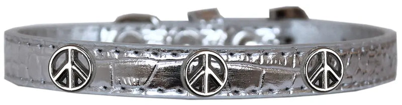 Peace Sign Widget Croc Dog Collar Silver Size 12