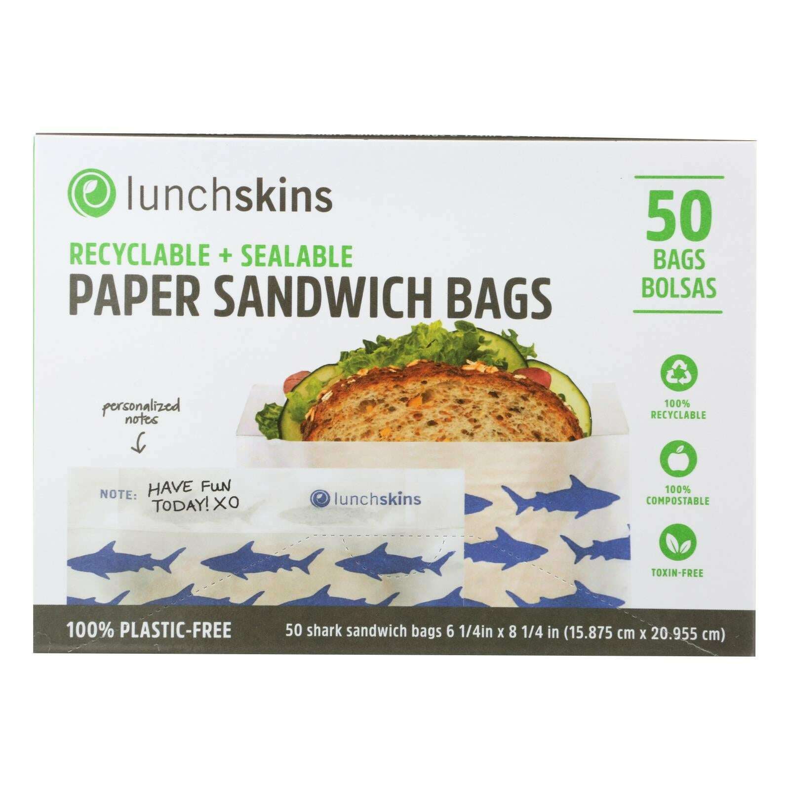 Lunchskins - recyclable and sealable paper sandwich bags - shark - case of 12 - 50 count
