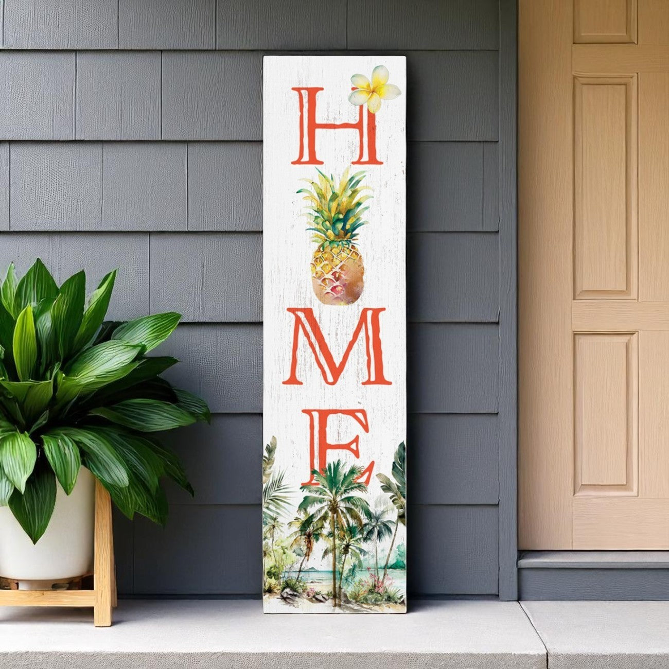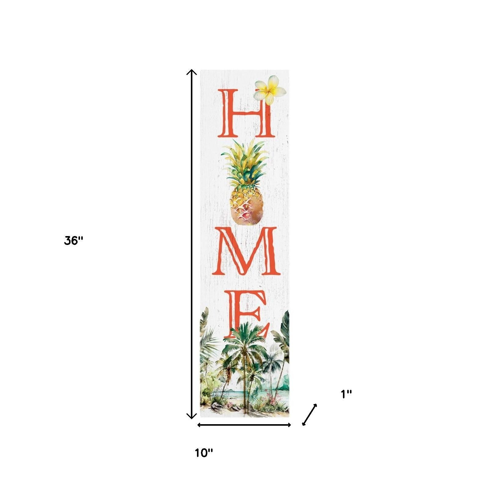 36" White Orange And Green Pineapple Home Solid Wood Porch Sign