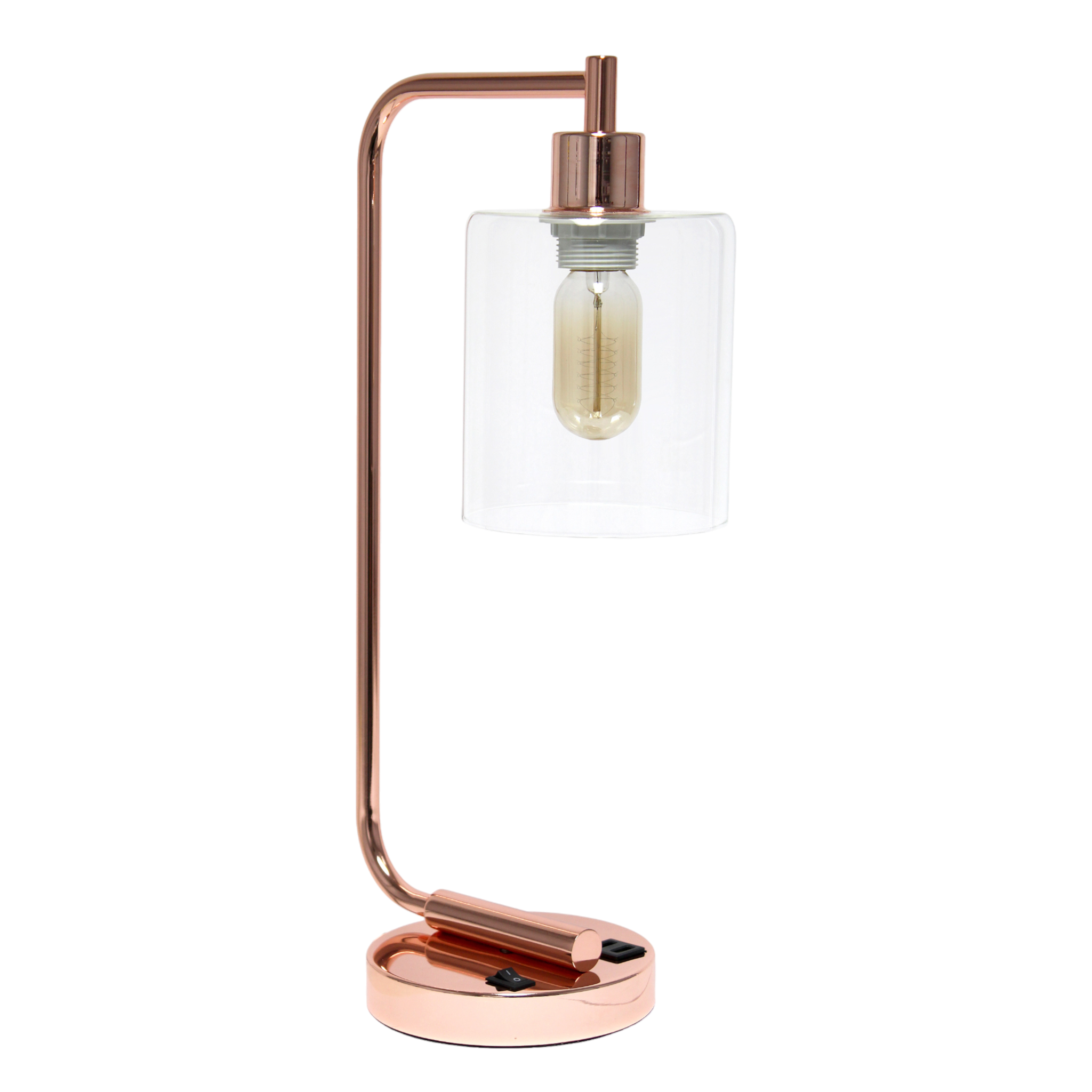 19" Rose Gold Iron Lantern USB Table Lamp With Clear Cylinder Shade