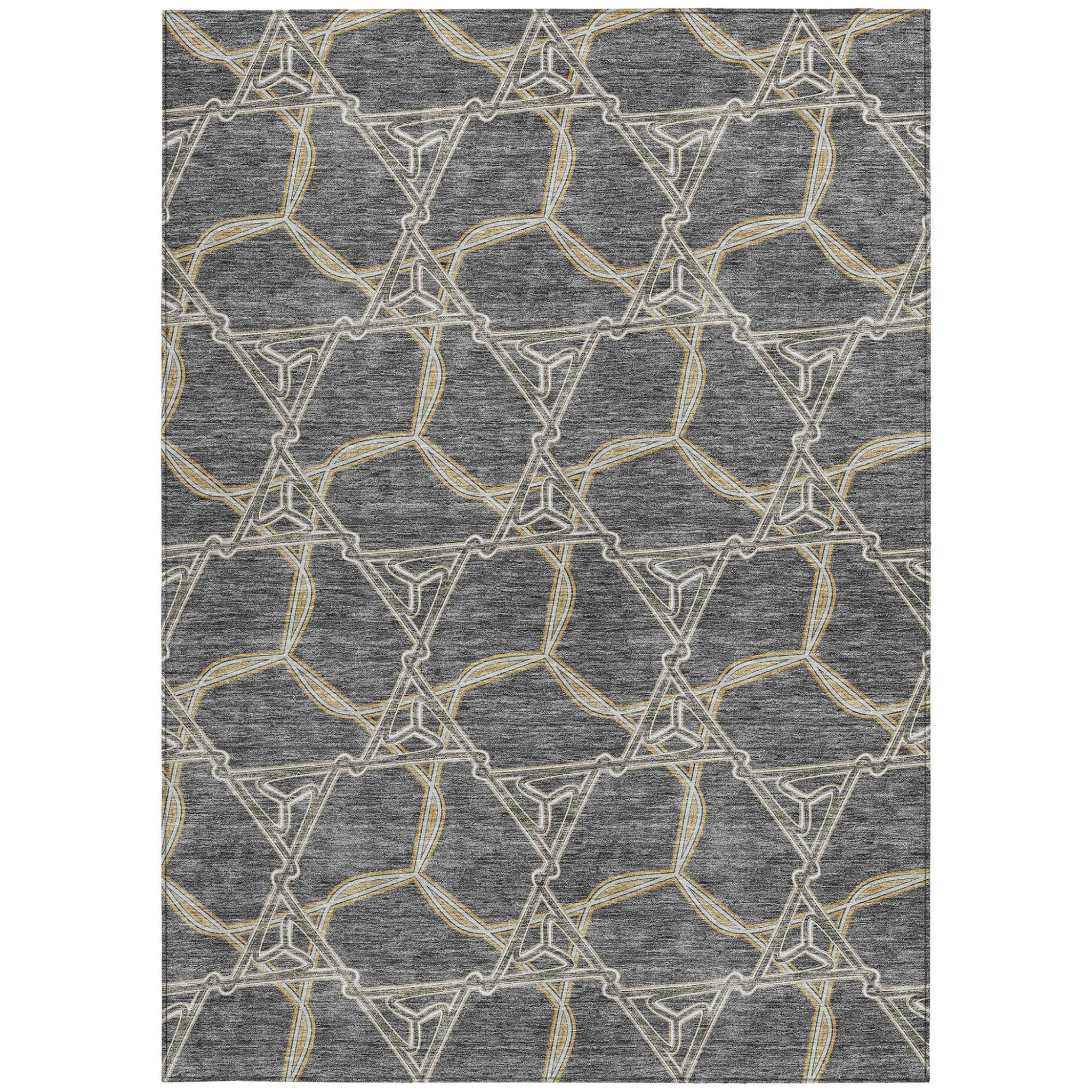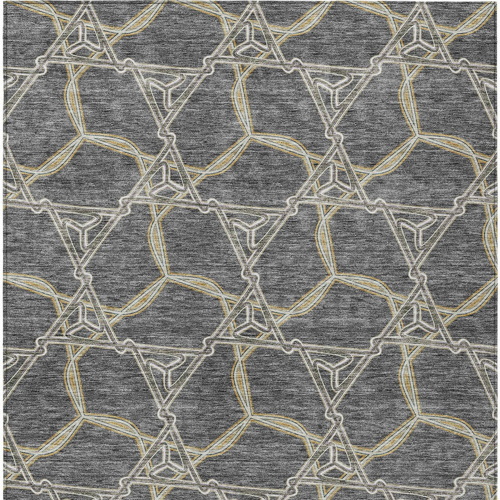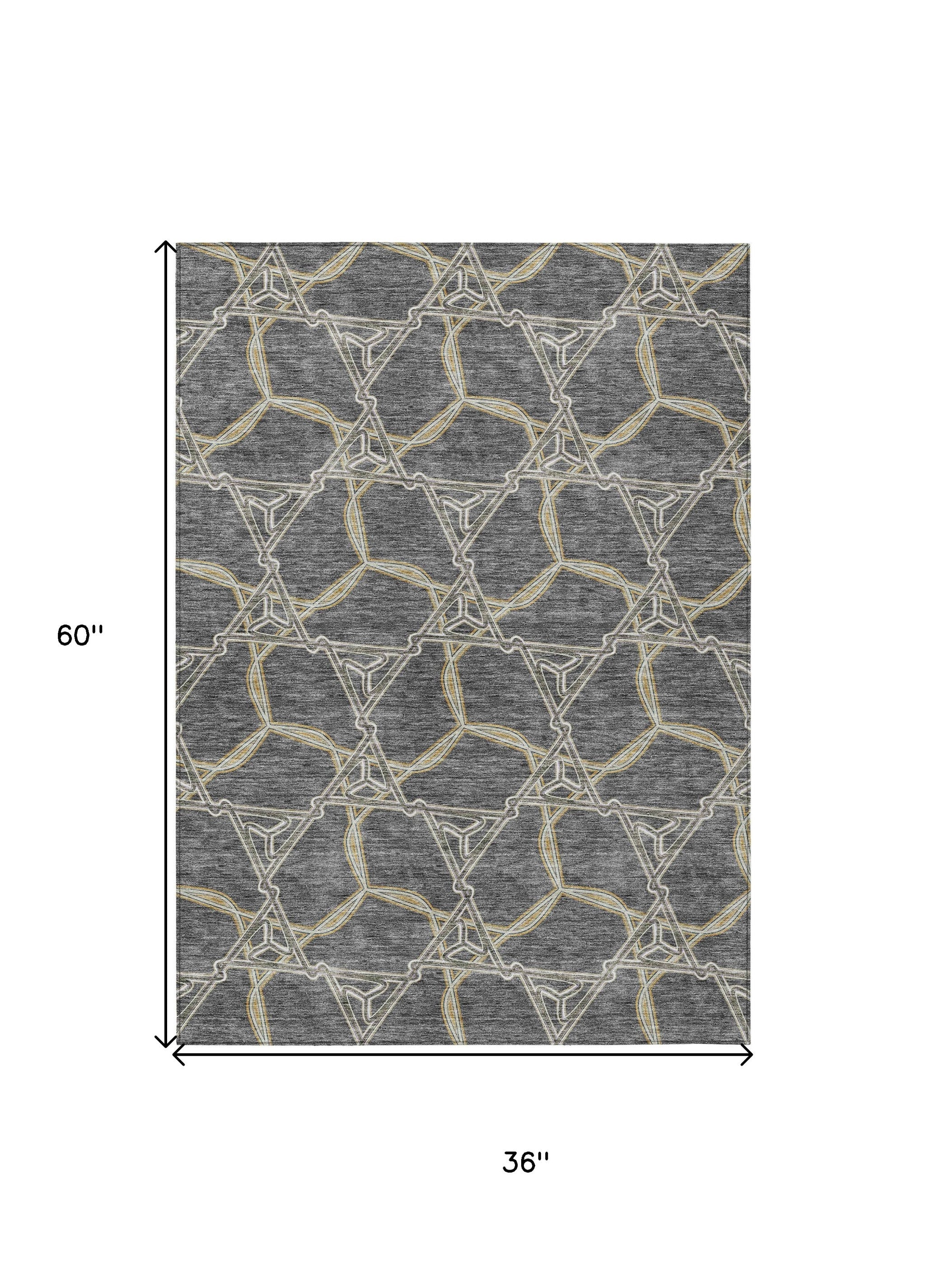 3' X 5' Charcoal And Gold Geometric Washable Indoor Outdoor Area Rug