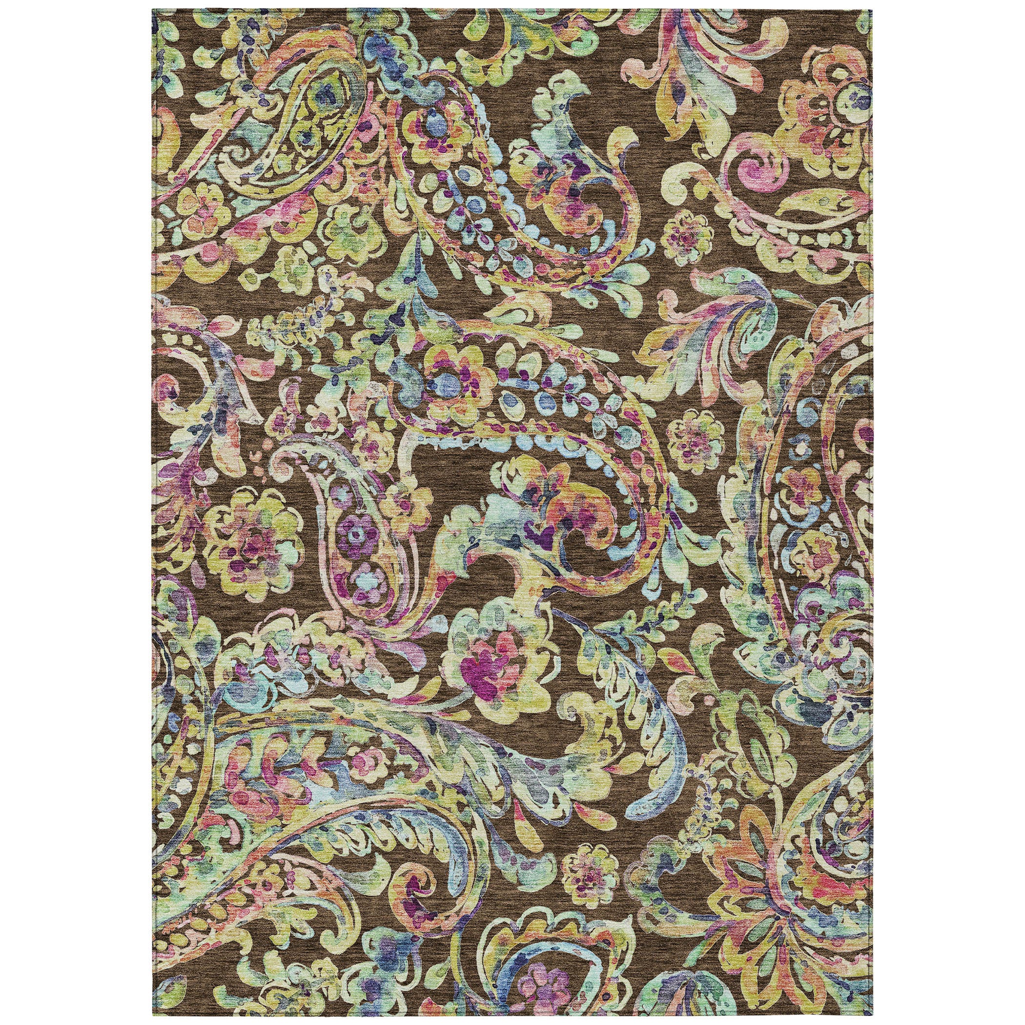 3' X 5' Chocolate And Artichoke Green Paisley Washable Indoor Outdoor Area Rug