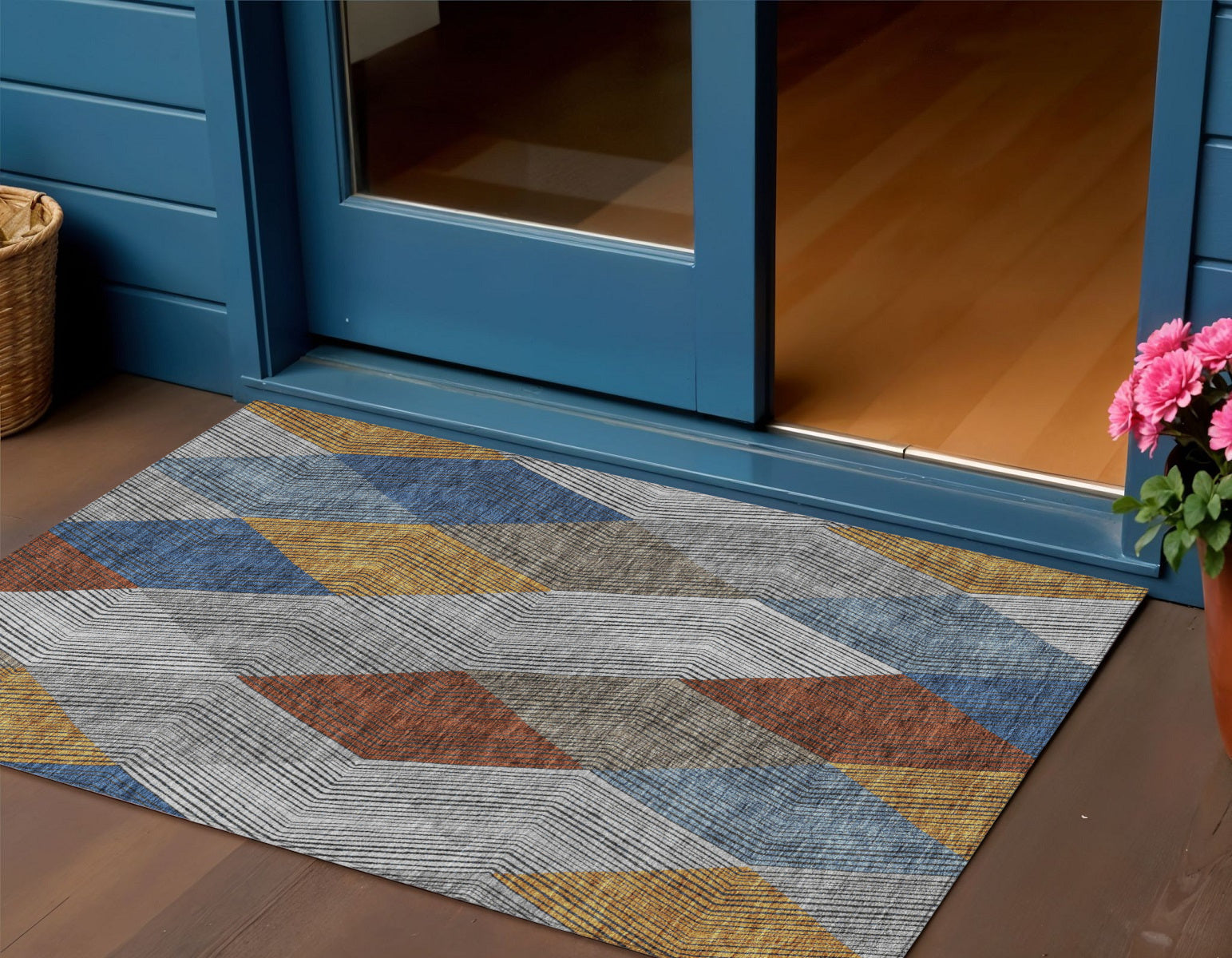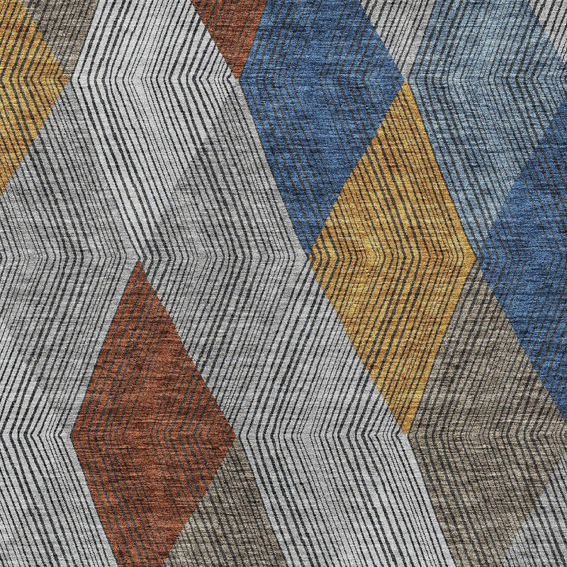 3' X 5' Gray Gold And Blue Argyle Washable Indoor Outdoor Area Rug