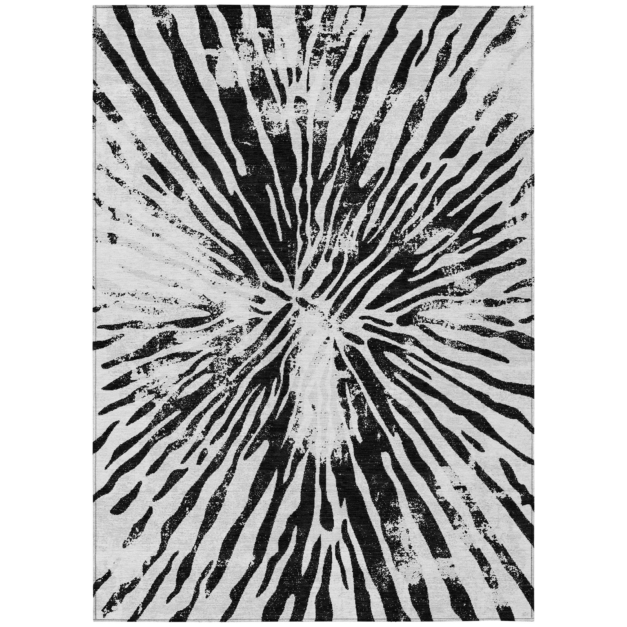 3' X 5' Ivory Black And Gray Abstract Washable Indoor Outdoor Area Rug
