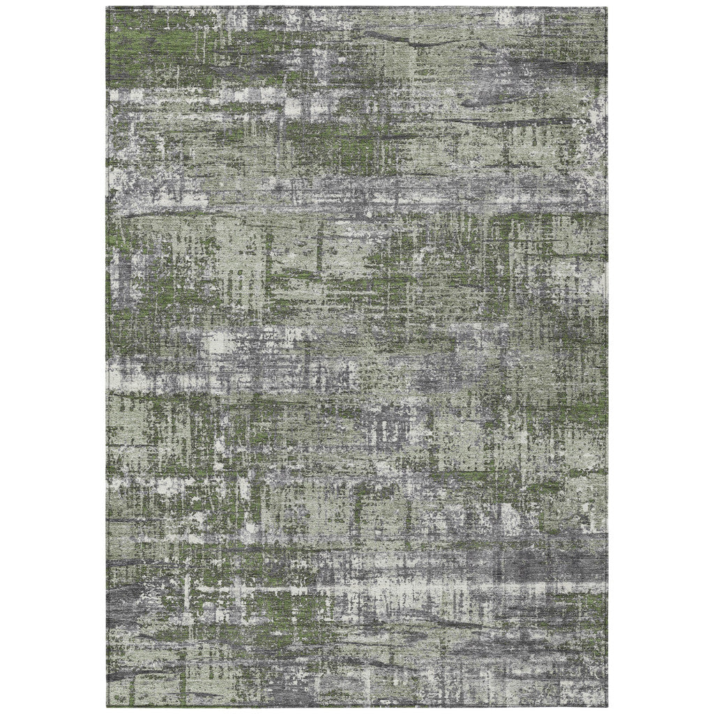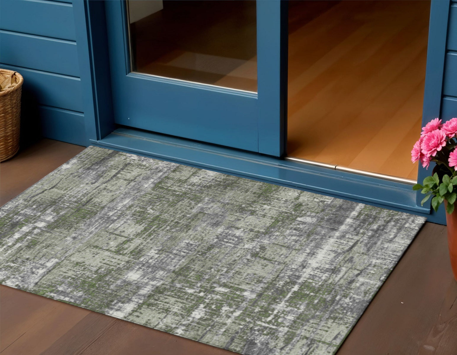 3' X 5' Olive Green And Ivory Geometric Washable Indoor Outdoor Area Rug