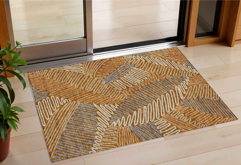 3' X 5' Orange Beige And Gray Floral Washable Indoor Outdoor Area Rug