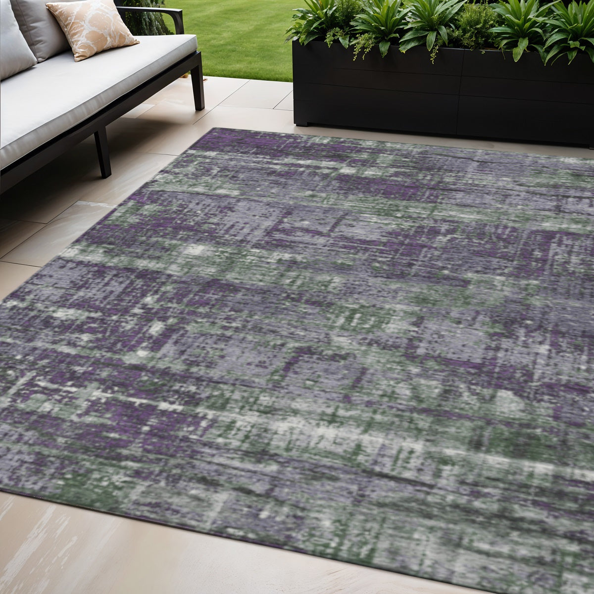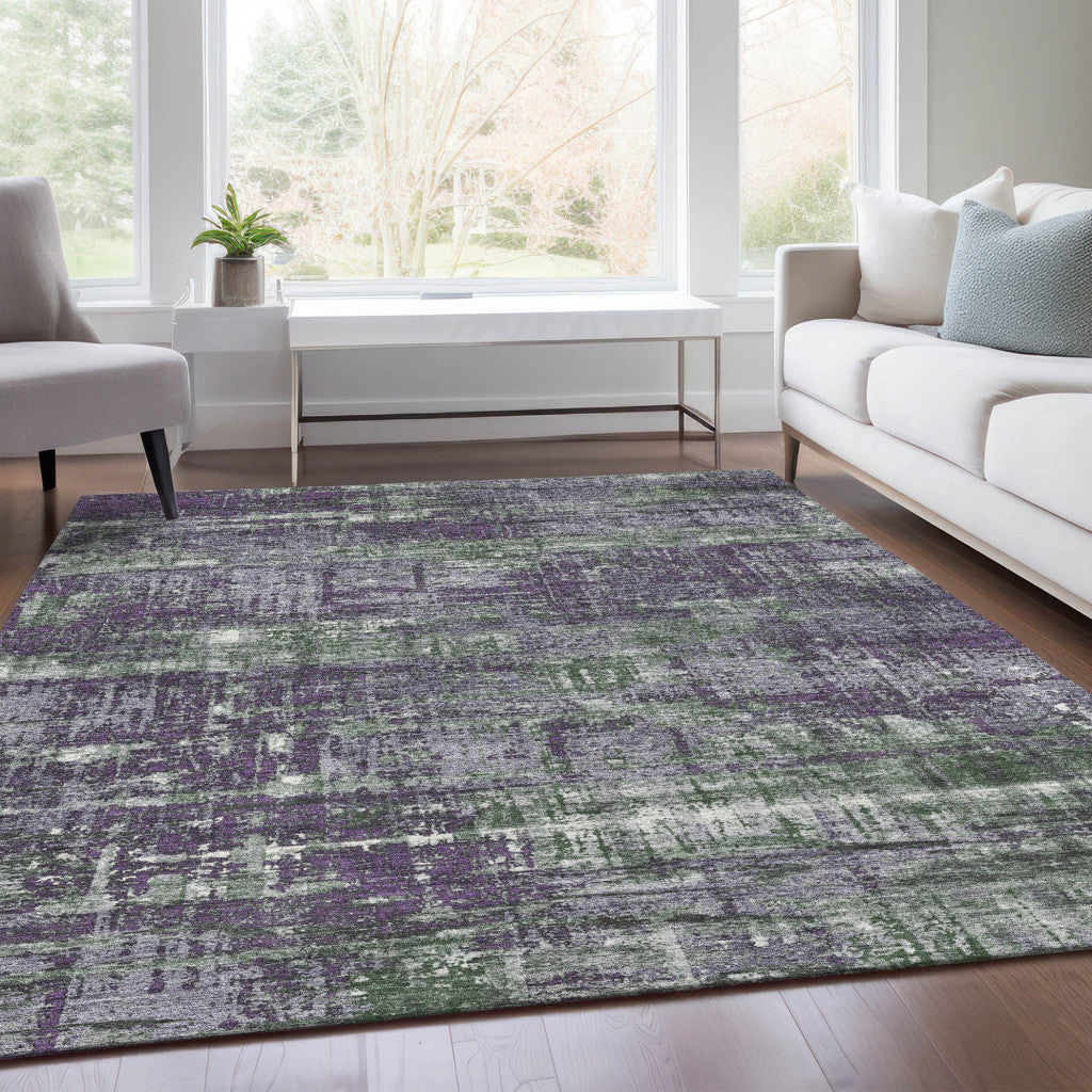 5' X 8' Purple And Green Geometric Washable Indoor Outdoor Area Rug