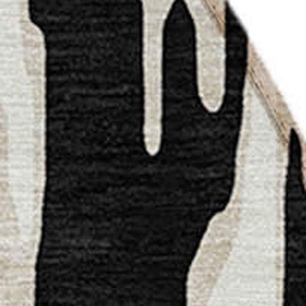 8' Black And Ivory Round Abstract Washable Indoor Outdoor Area Rug